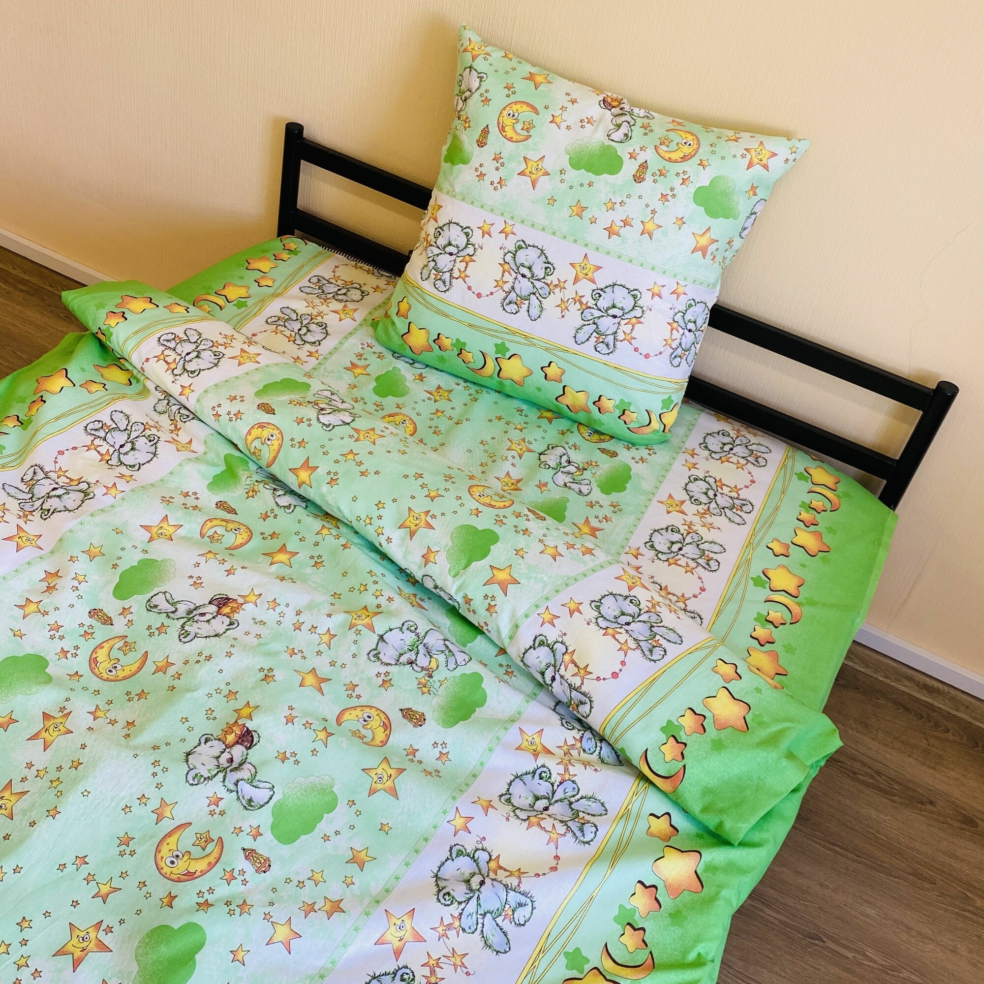 СохранитьНаволочка 70х70 1 шт Бязь Хлопок Мишки и звезды на зеленом фоне интересное: