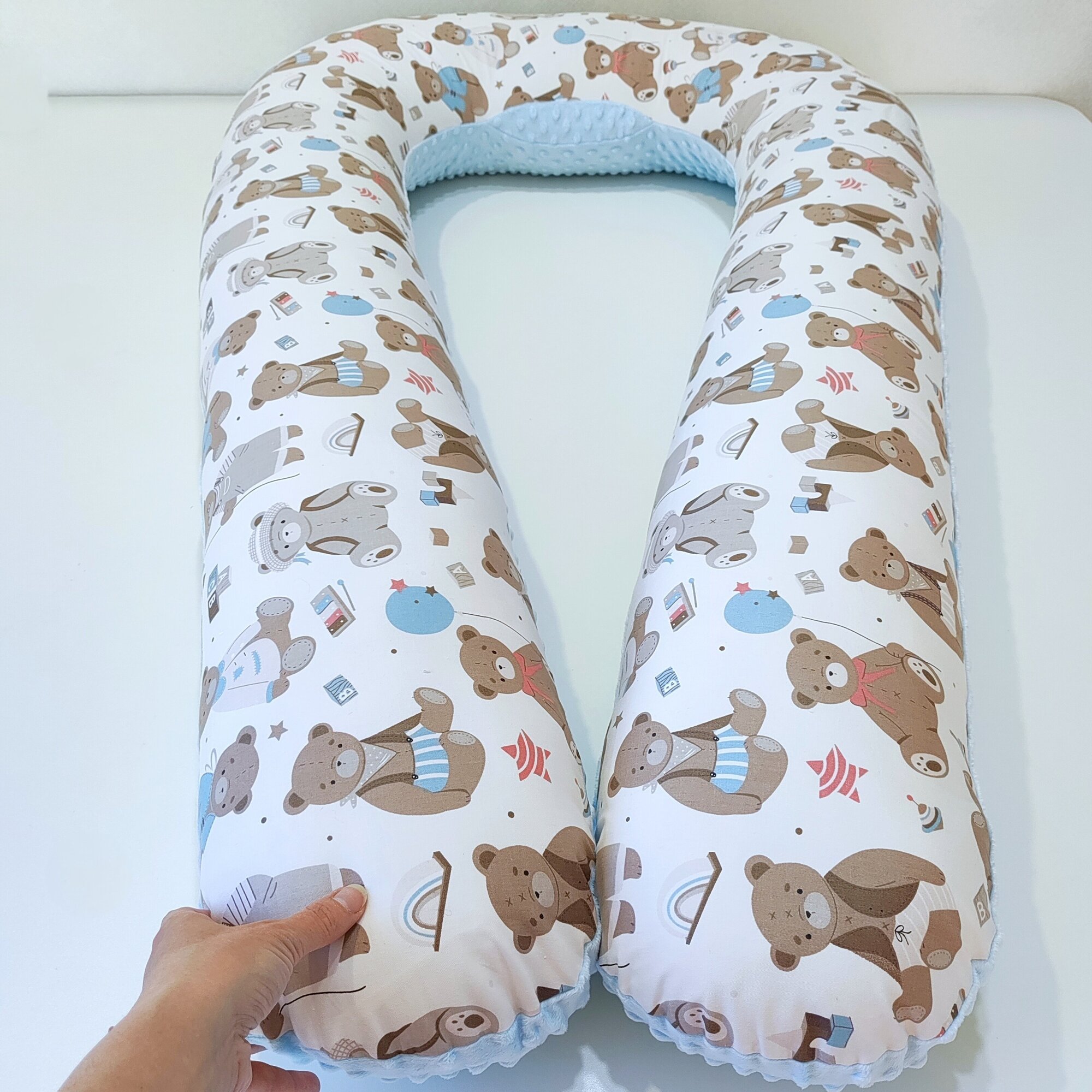 Купить Подушка для беременных сатин+ плюш анатомическая, мишки и голубой плюш минки