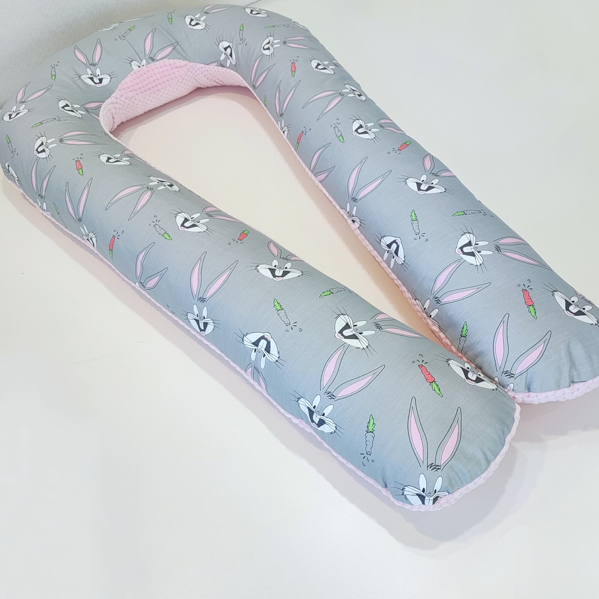 Подушка для беременных и не только , для сна U, плюш + хлопок, зайчики на бежевом