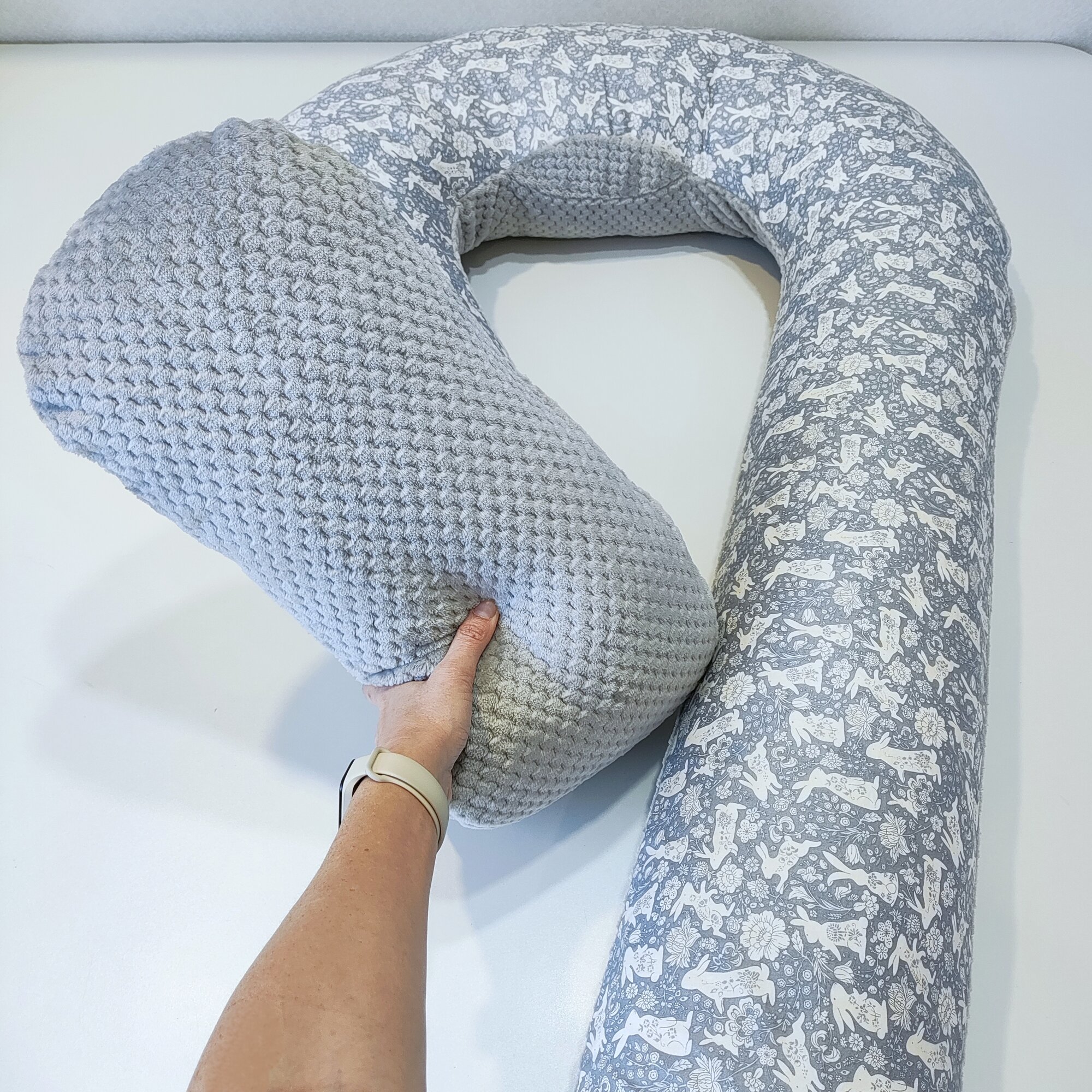 Подушка для беременных U с хлопком, сатин- 100% хлопок, зайки на сером