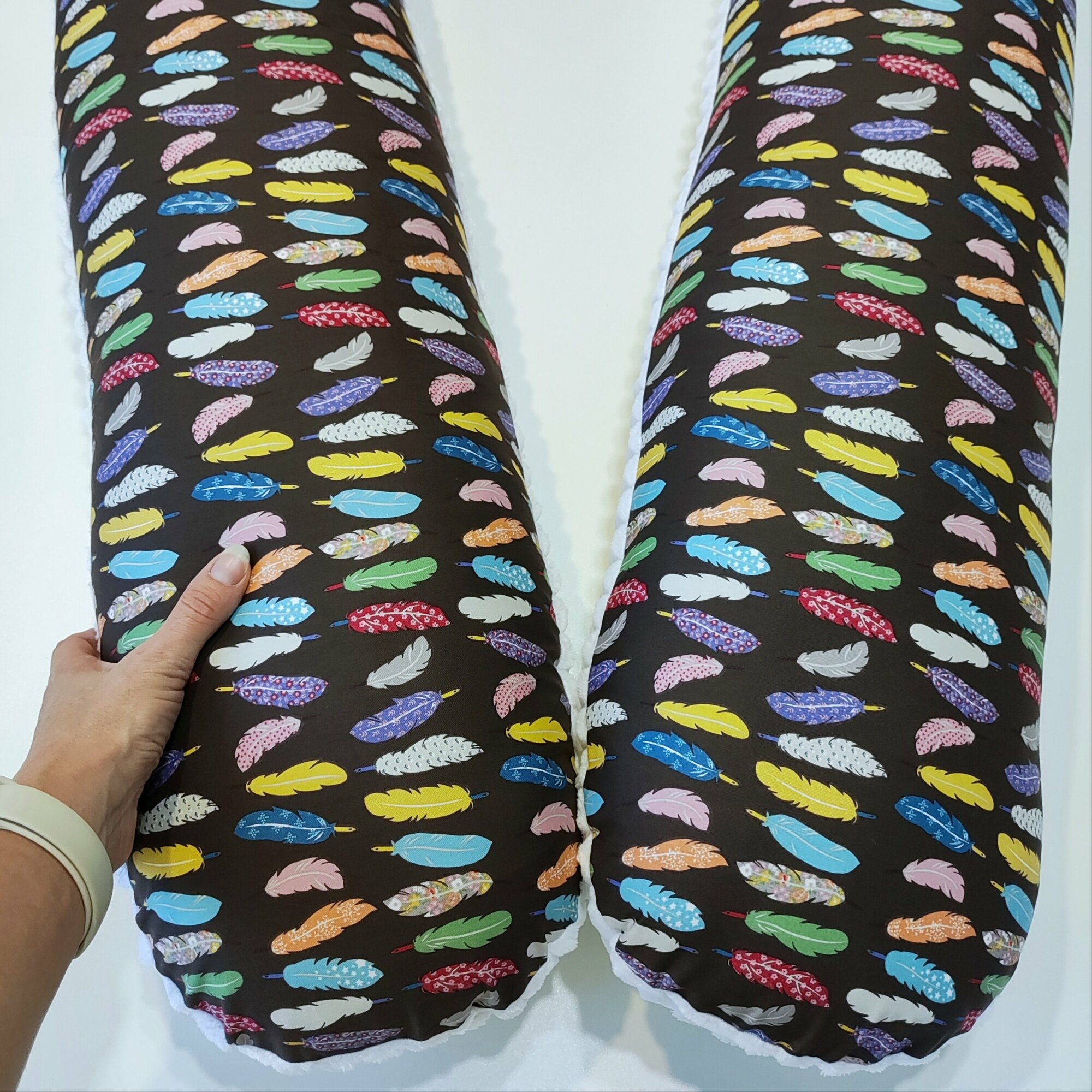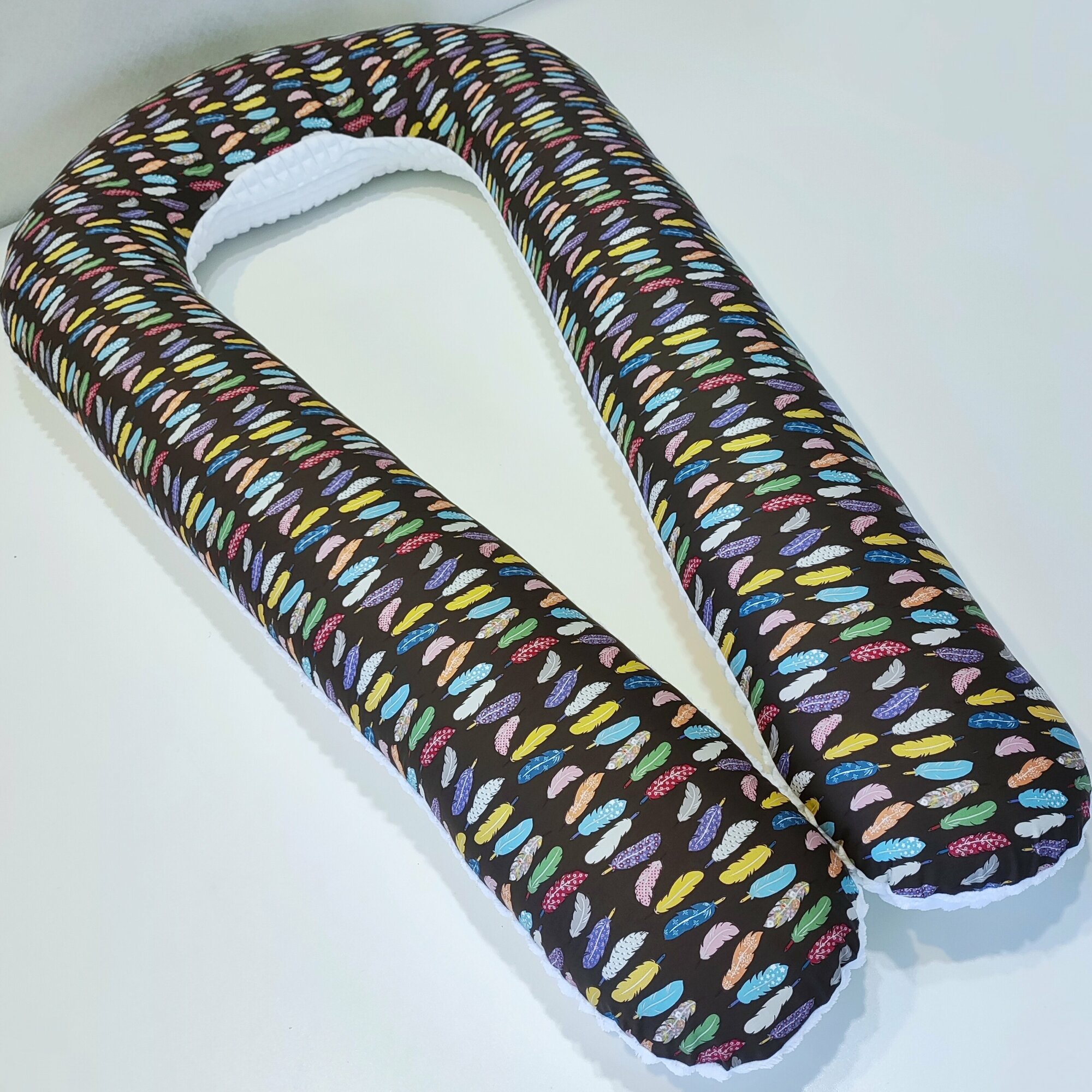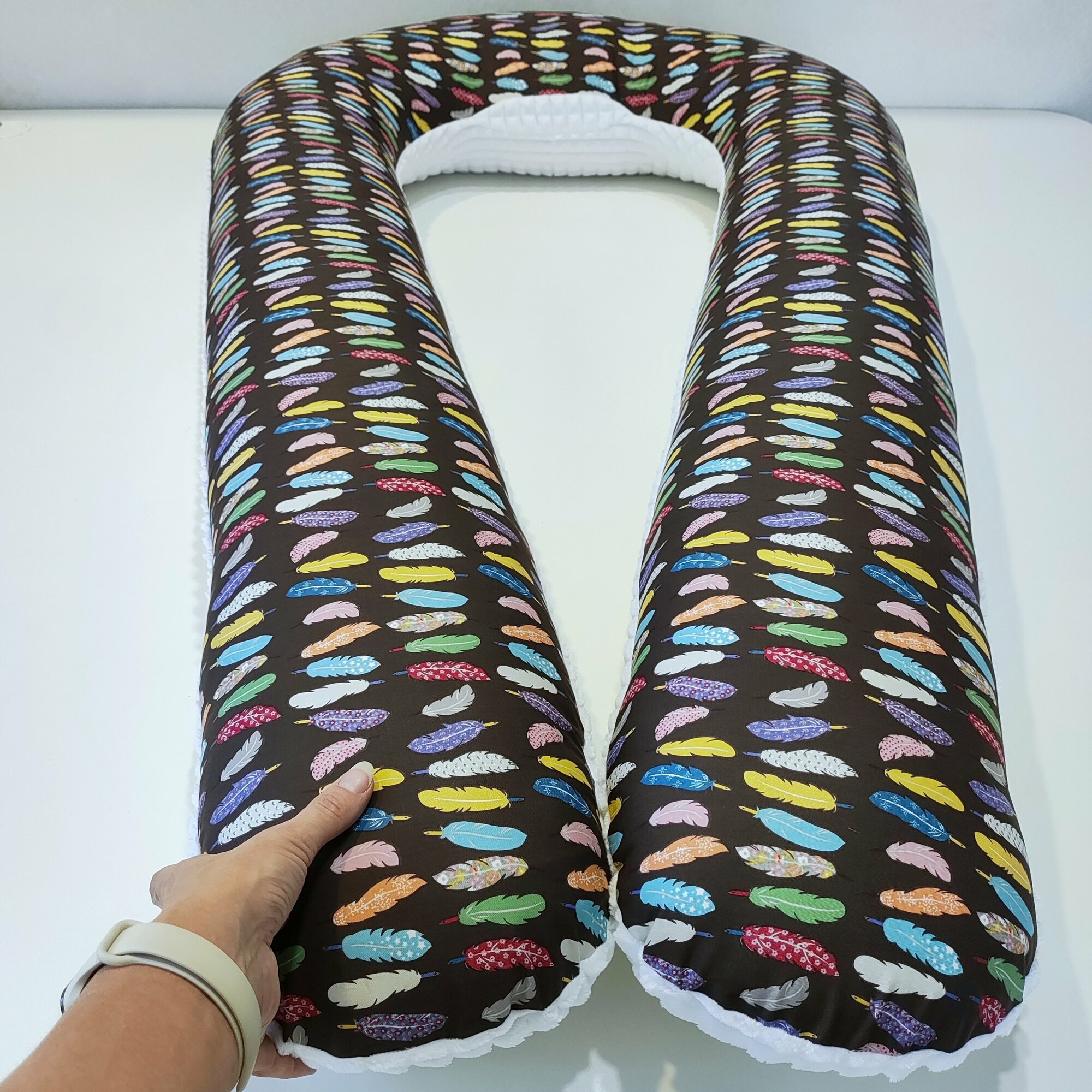 Подушка для беременных U для сна, хлопок, сатин + плюш, пёрышки, листики
