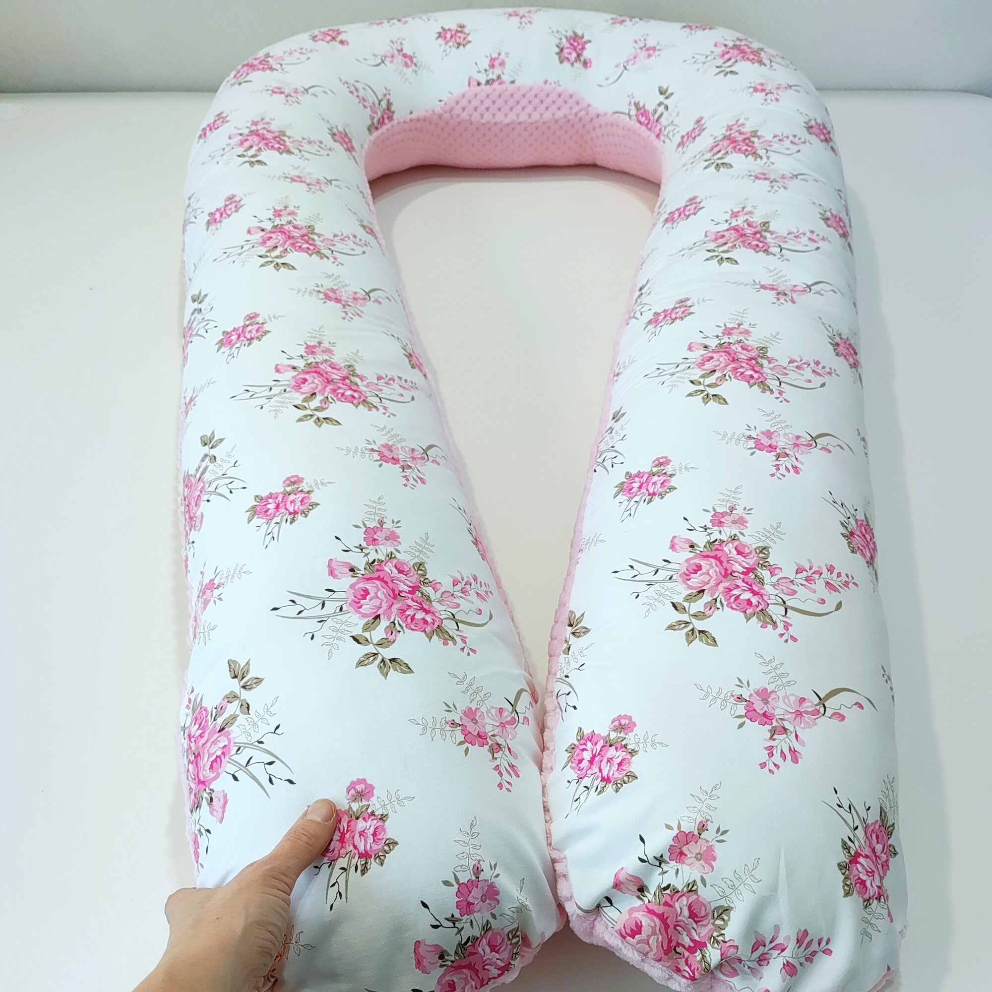 Купить Подушка для беременных для сна U, плюш + хлопок Чехия, цветы на белом