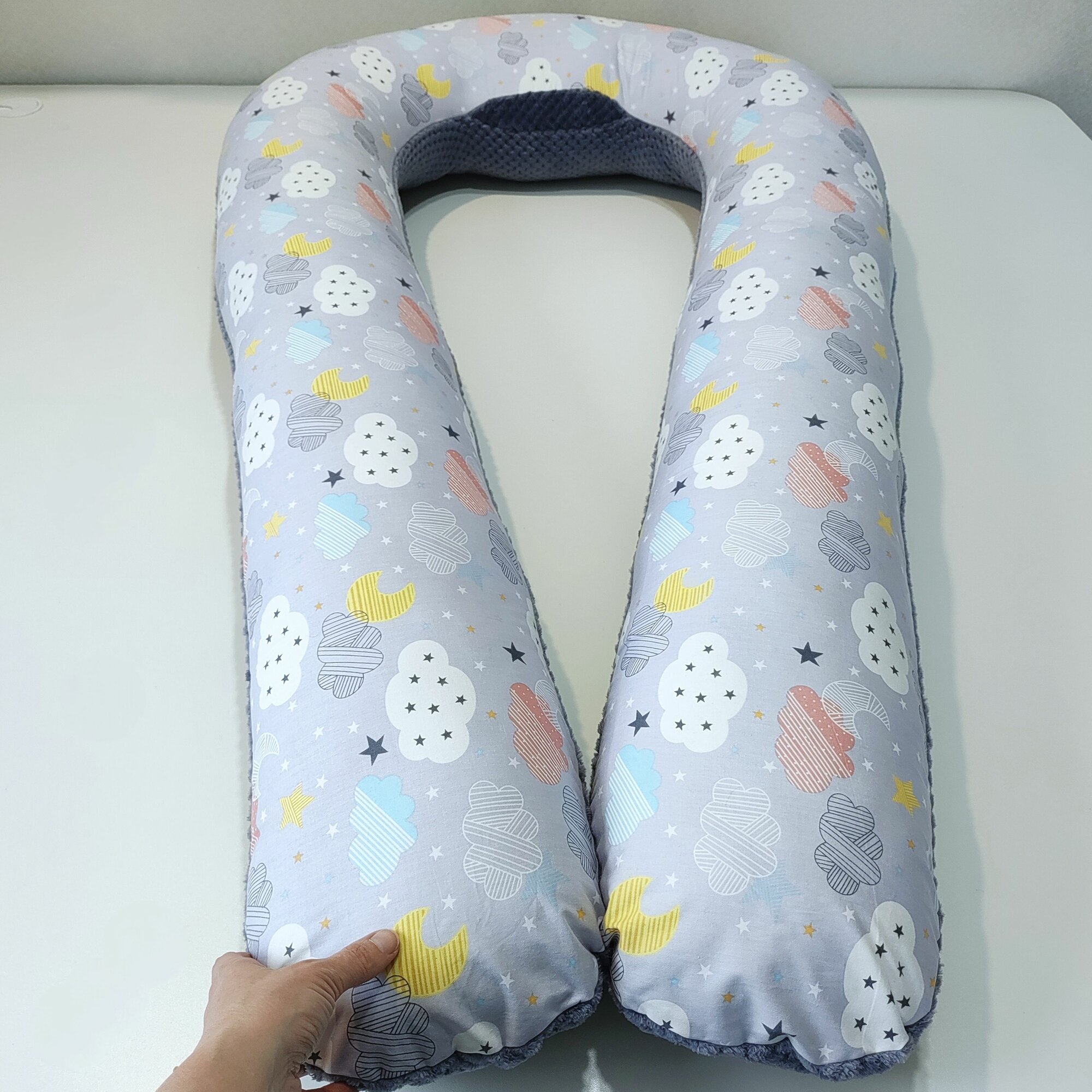 Купить Подушка для беременных "Ксенчик-птенчик" 80х150 см, облака на сером
