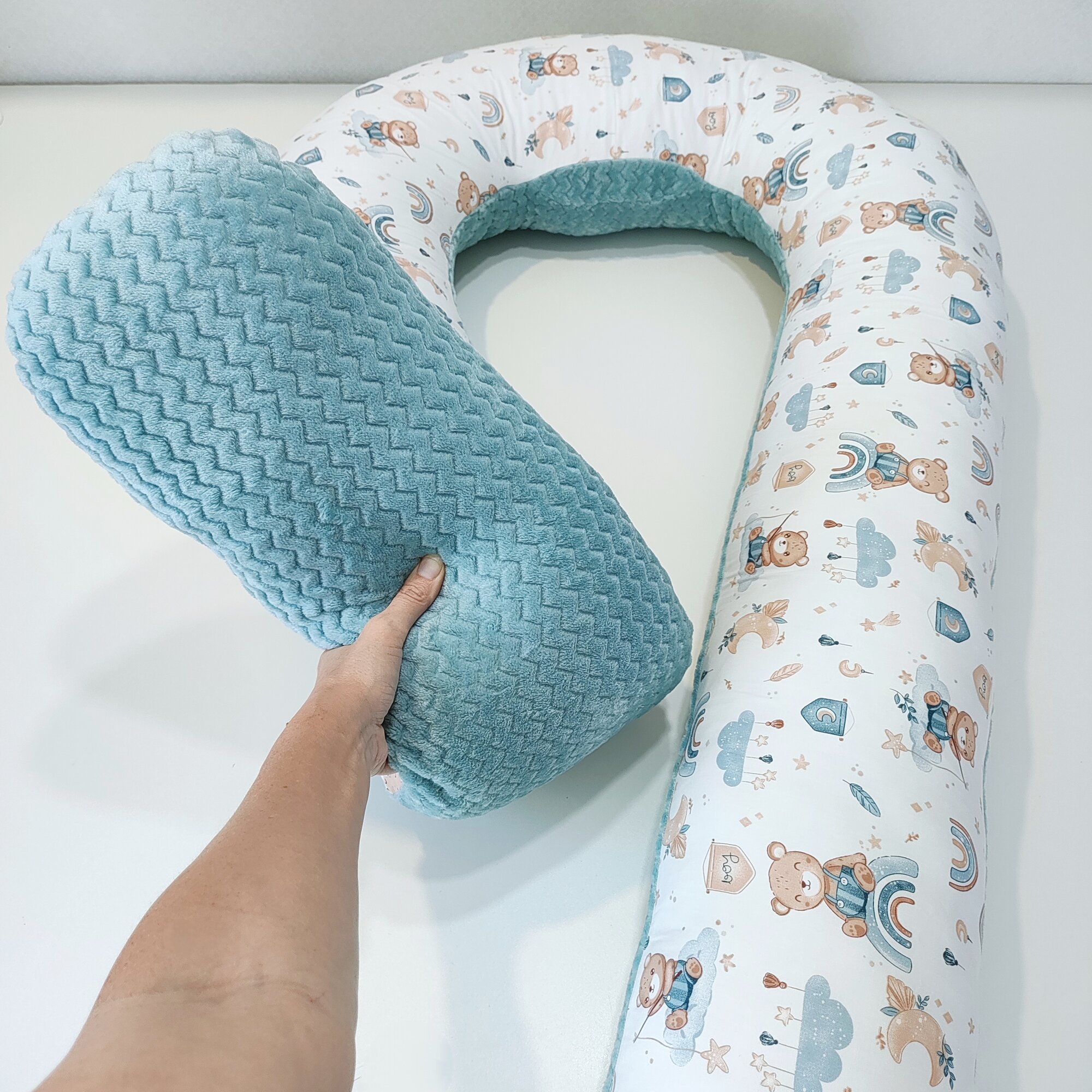 Купить Подушка для беременных анатомическая U 360 , плюш + сатин , медвежата на радуге и бирюзовый плюш