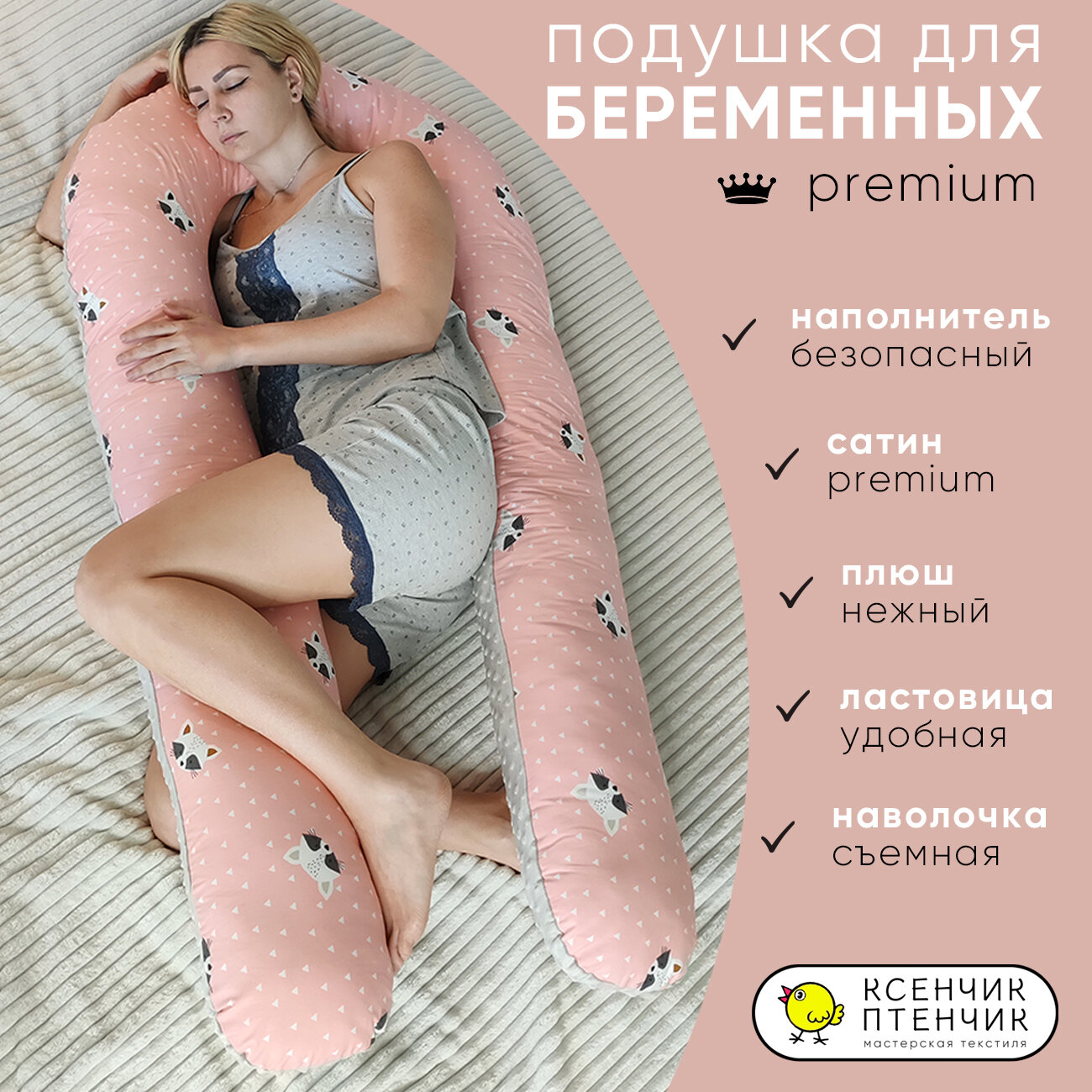 Подушка для беременных "U" из хлопка и сатина от бренда "Ксенчик-Птенчик"