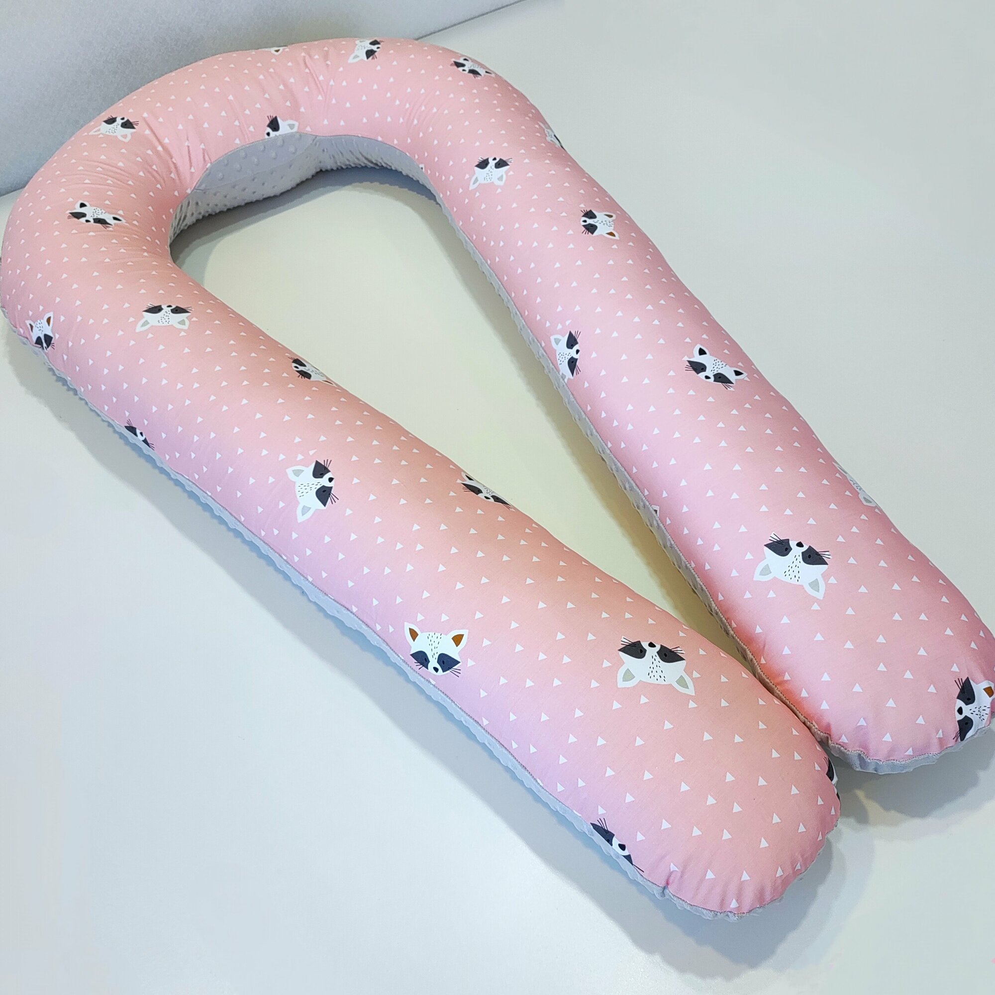 Купить Подушка для беременных U 360 см, хлопок, сатин + плюш, енотики на персиковом