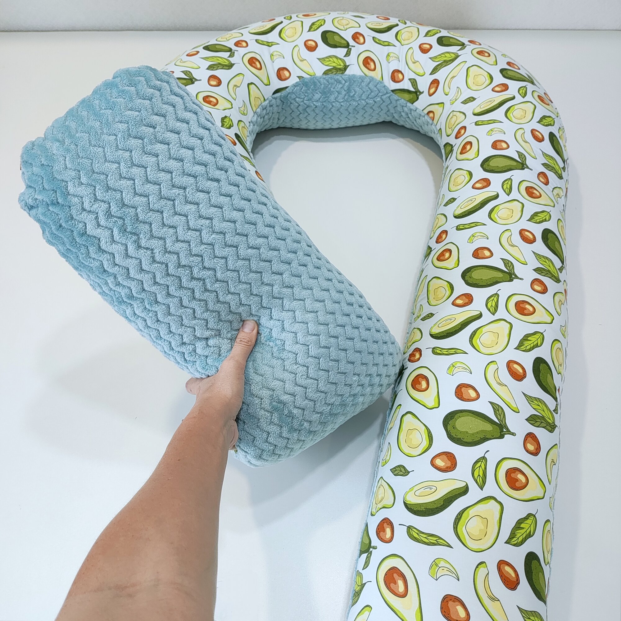 Подушка для беременных для сна U, плюш + хлопок, авокадо и бирюзовый плюш интересное: