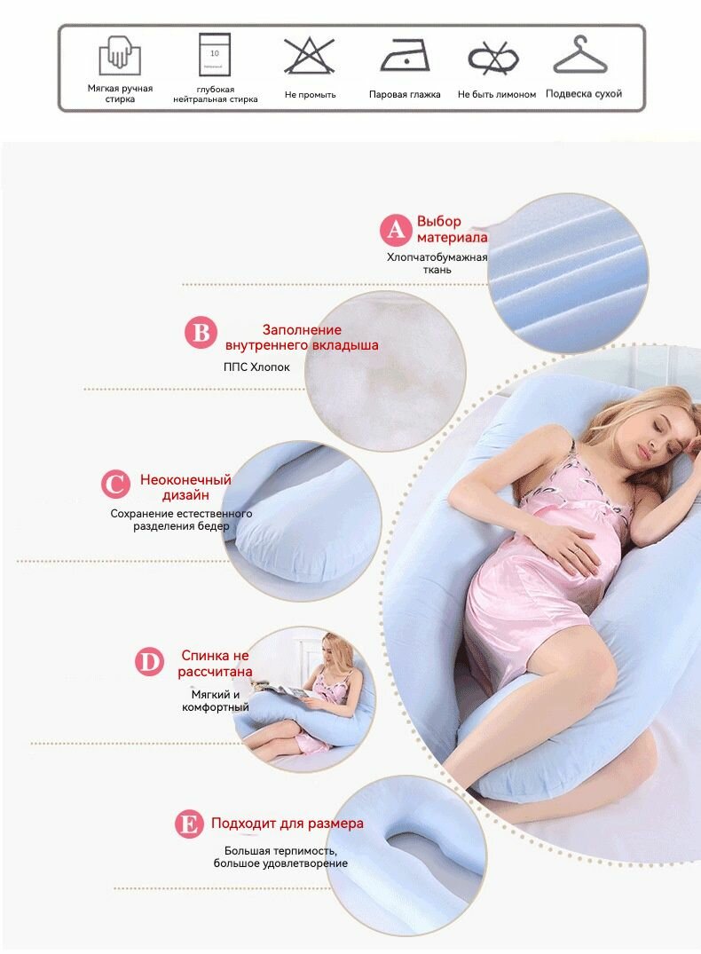 CINE CITY Подушка для беременных, U-образная, велюр, 70х130см, белая интересное: