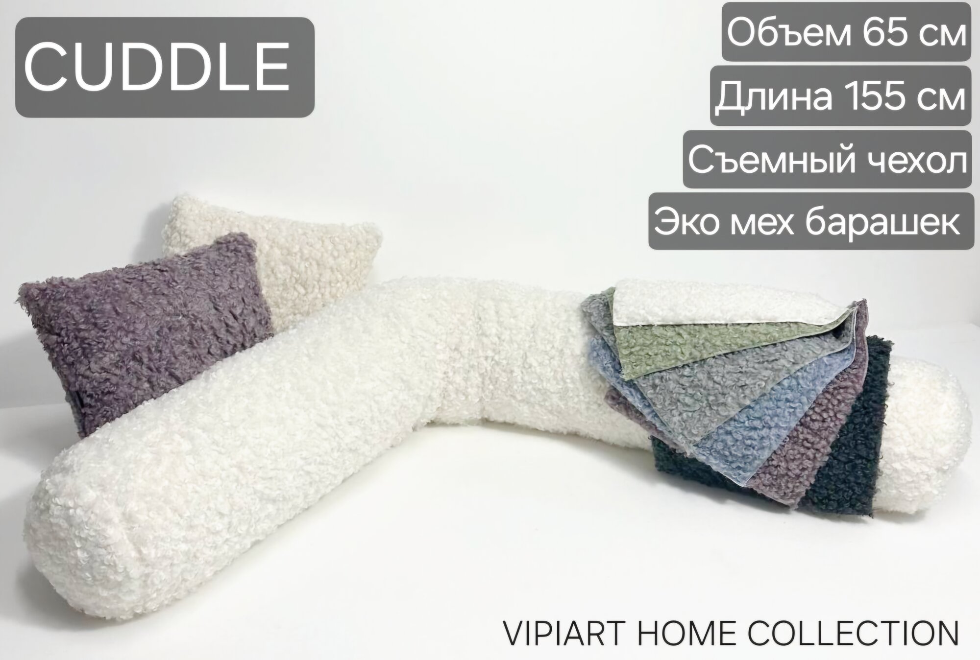 Купить Подушки для беременных, эко мех Барашек, длина 155 см, объем 65 см, Vipiart, съёмный чехол, Наполнитель синтешар