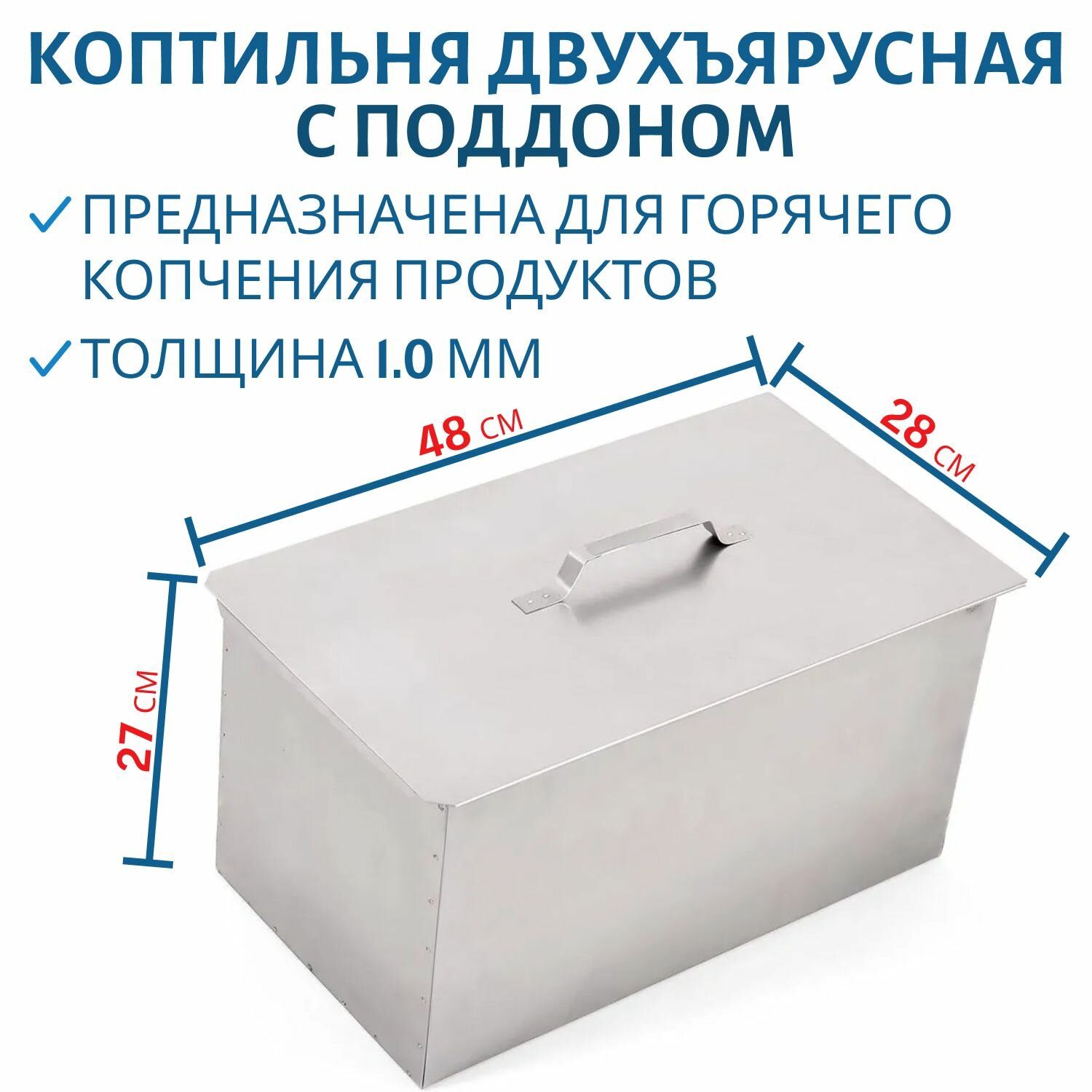 Коптильня двухъярусная сталь 480х280х270 толщина 1.0 мм с поддоном для сбора жира интересное: