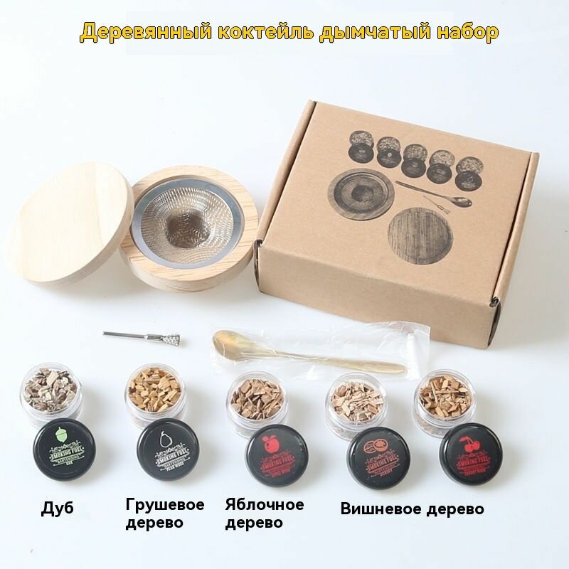 Деревянная коптильня для коктейлей, 5 фруктовых щепок, набор для копчения интересное: