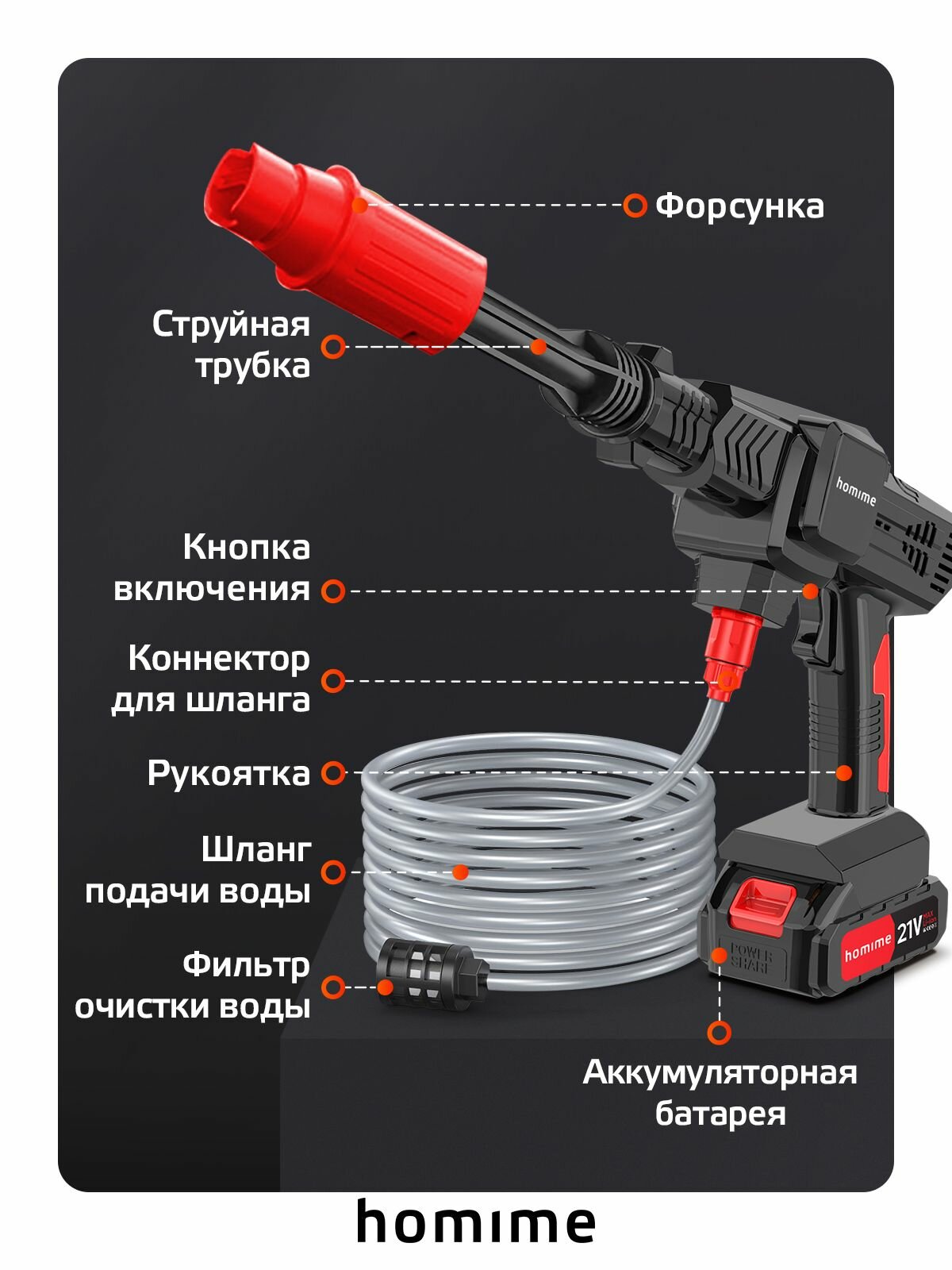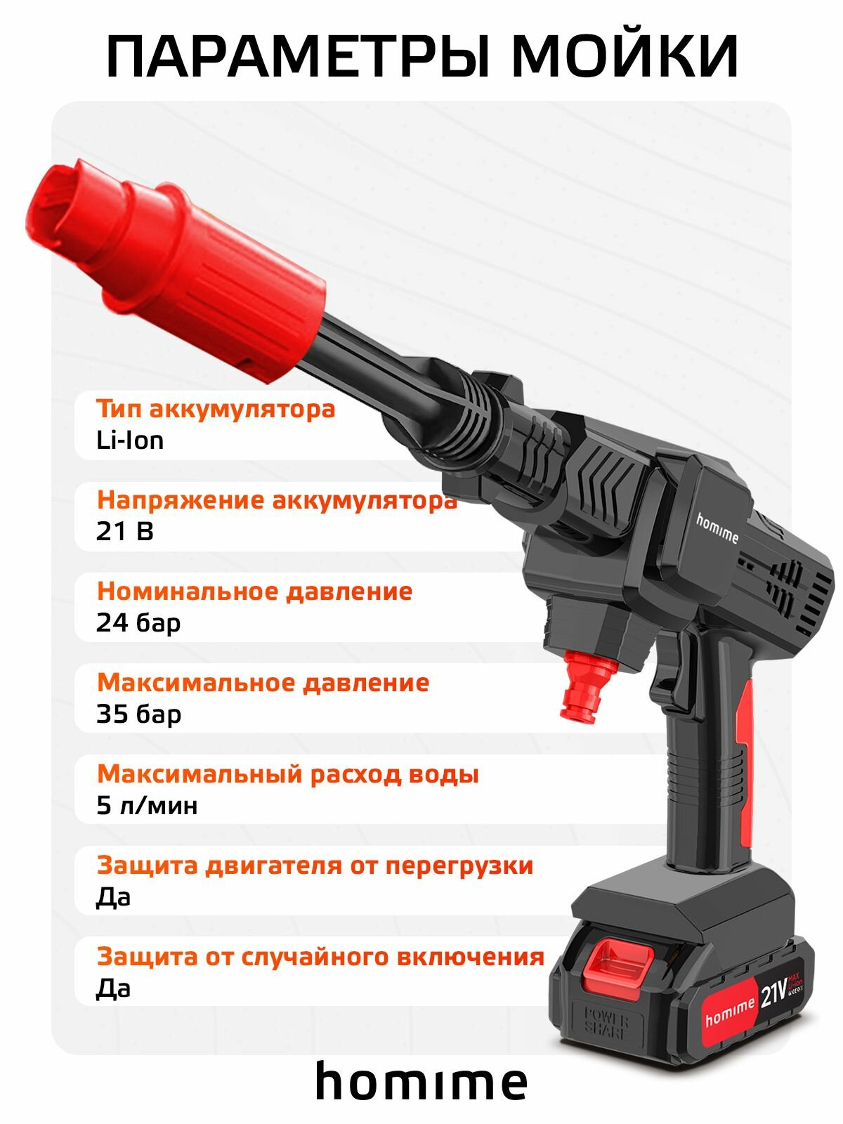 Портативная автомойка Homime PRO, беспроводная, перезаряжаемый аккумулятор, кейс для хранения интересное: