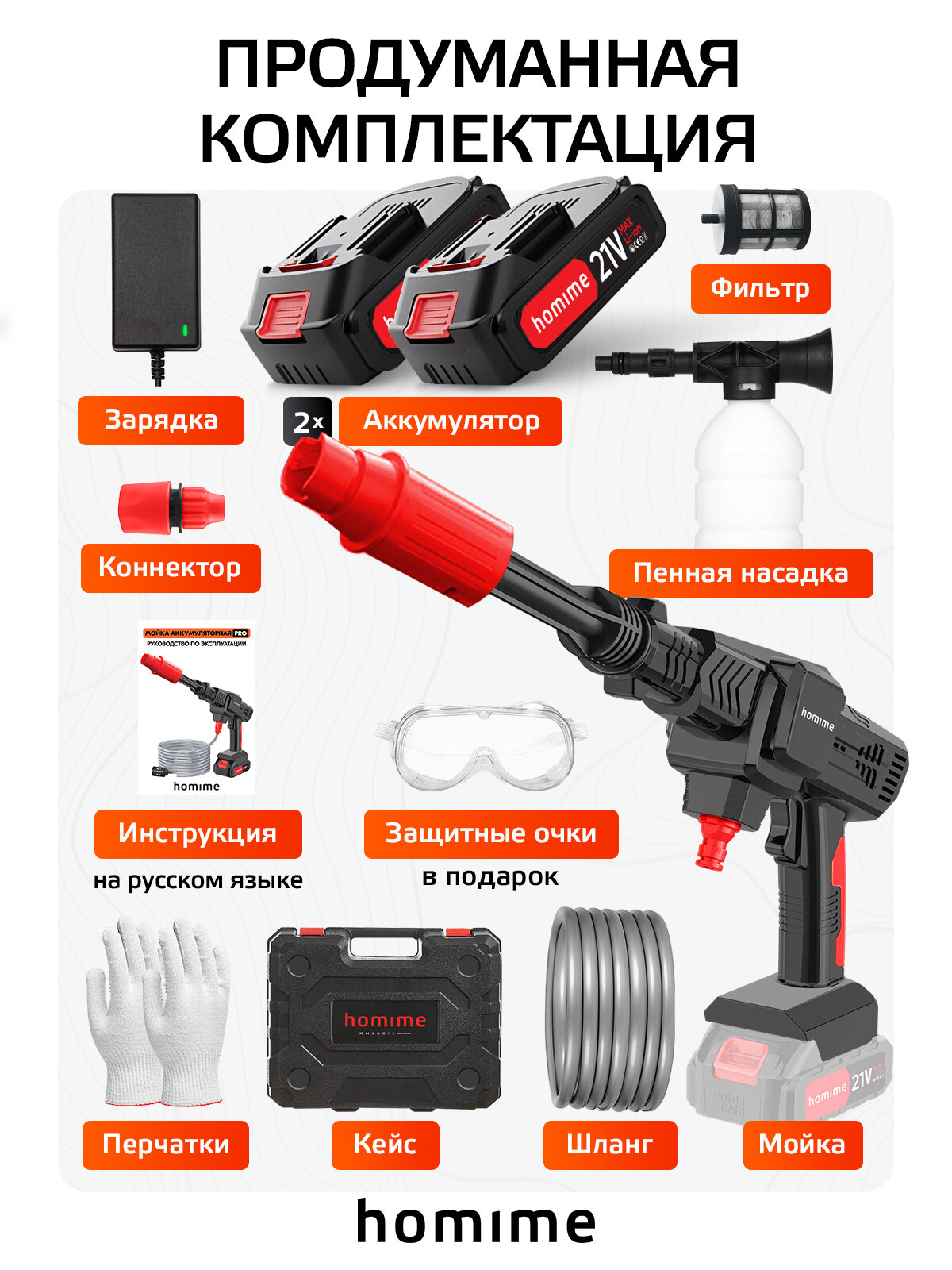 Портативная автомойка Homime PRO, беспроводная, 2 перезаряжаемых аккумулятора, кейс для хранения интересное: