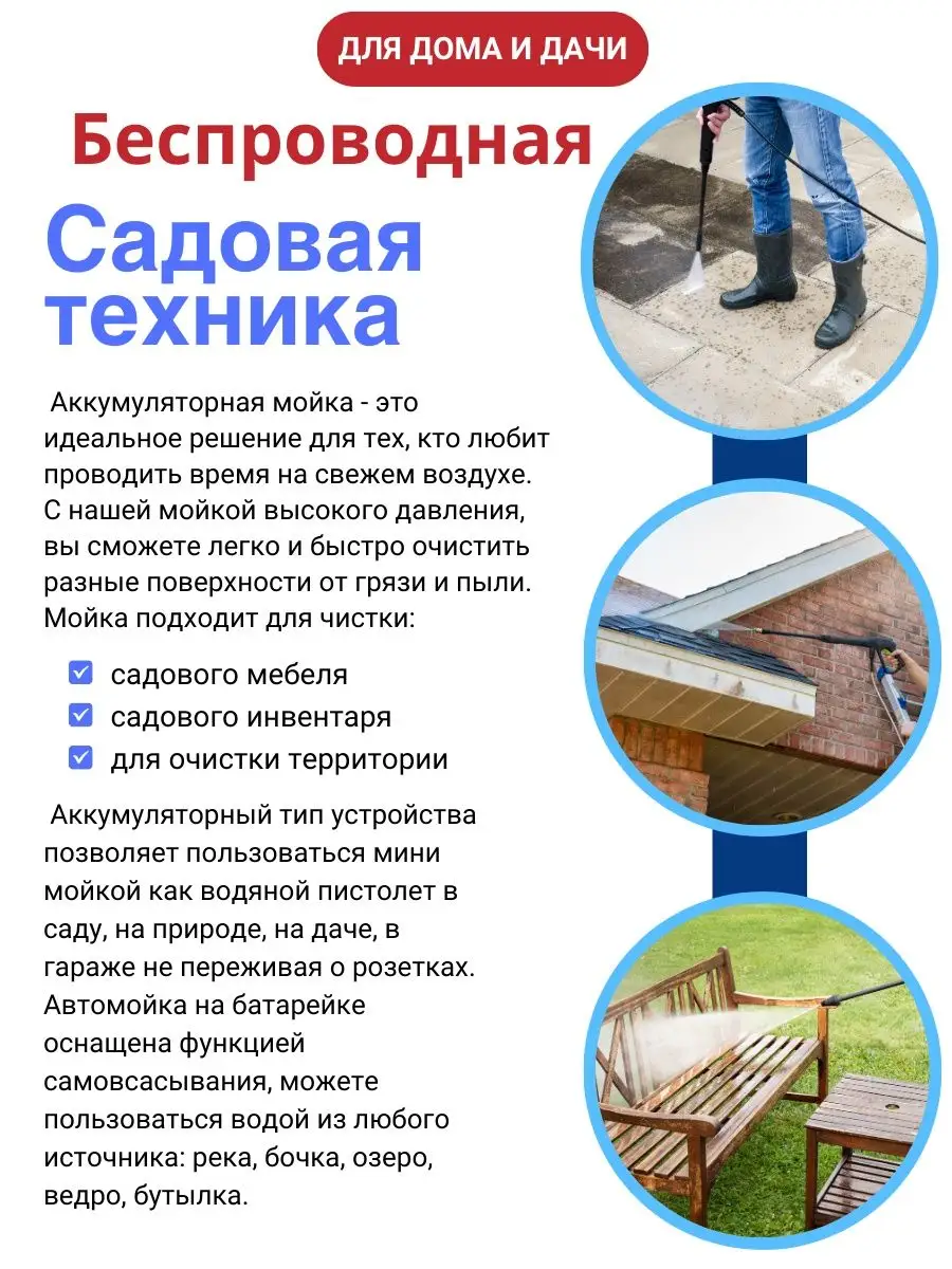 Автомойка аккумуляторная высокого давления, автомобильная мини мойка, мощная батарея интересное: