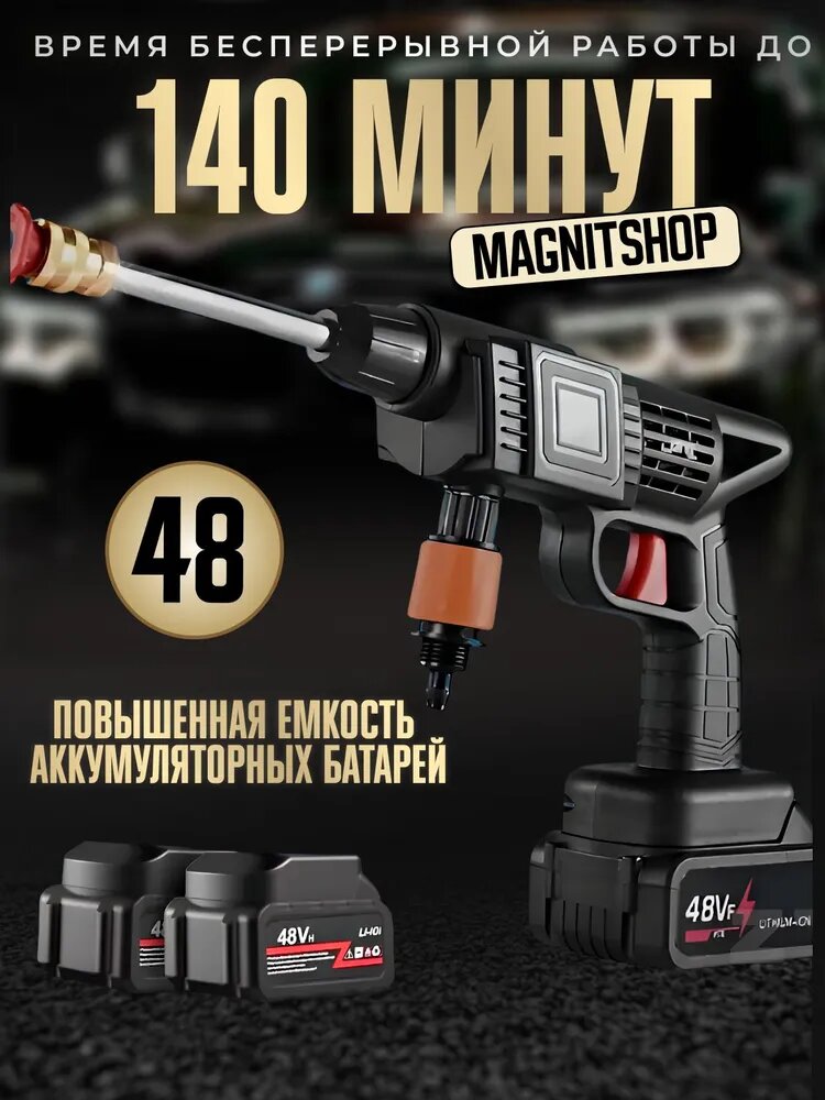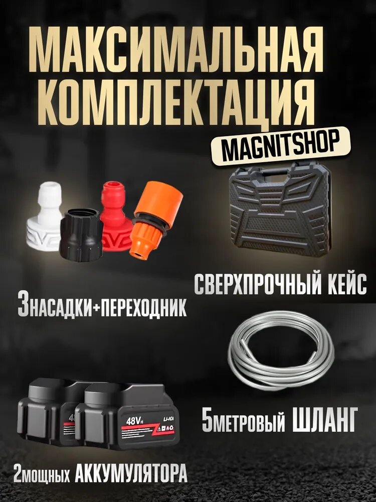 Автомойка, портативная, 1000 Вт, 2 аккумулятора, давление 40 бар интересное: