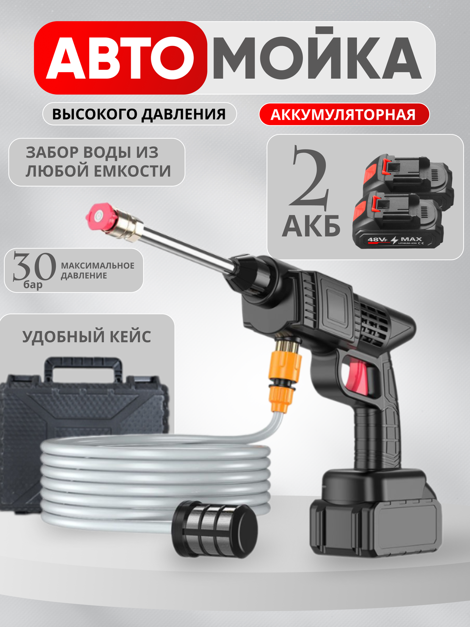 Аккумуляторная мойка высокого давления для мытья машин, садовых дорожек, ковров, мебели интересное: