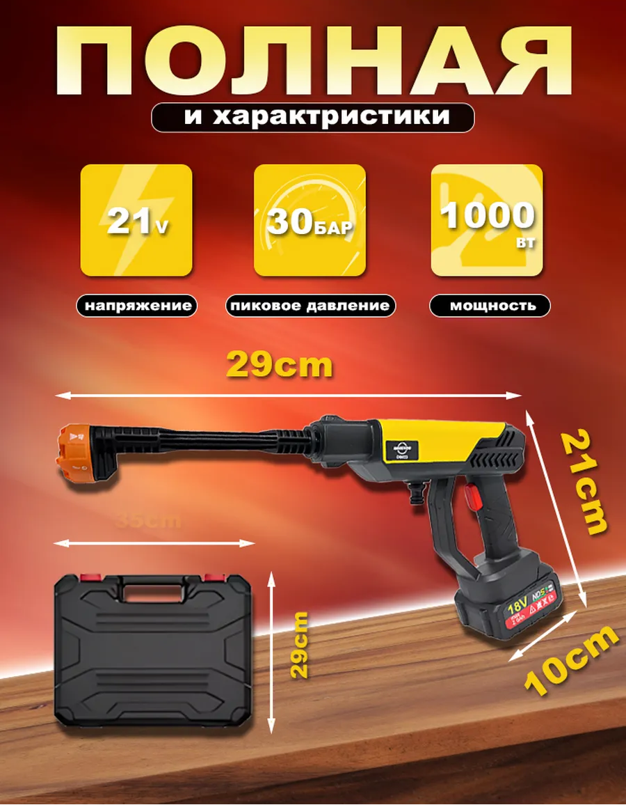 Купить Мойка высокого давления Contrast_Store, аккумуляторная, 1000 Вт, давление 30 бар