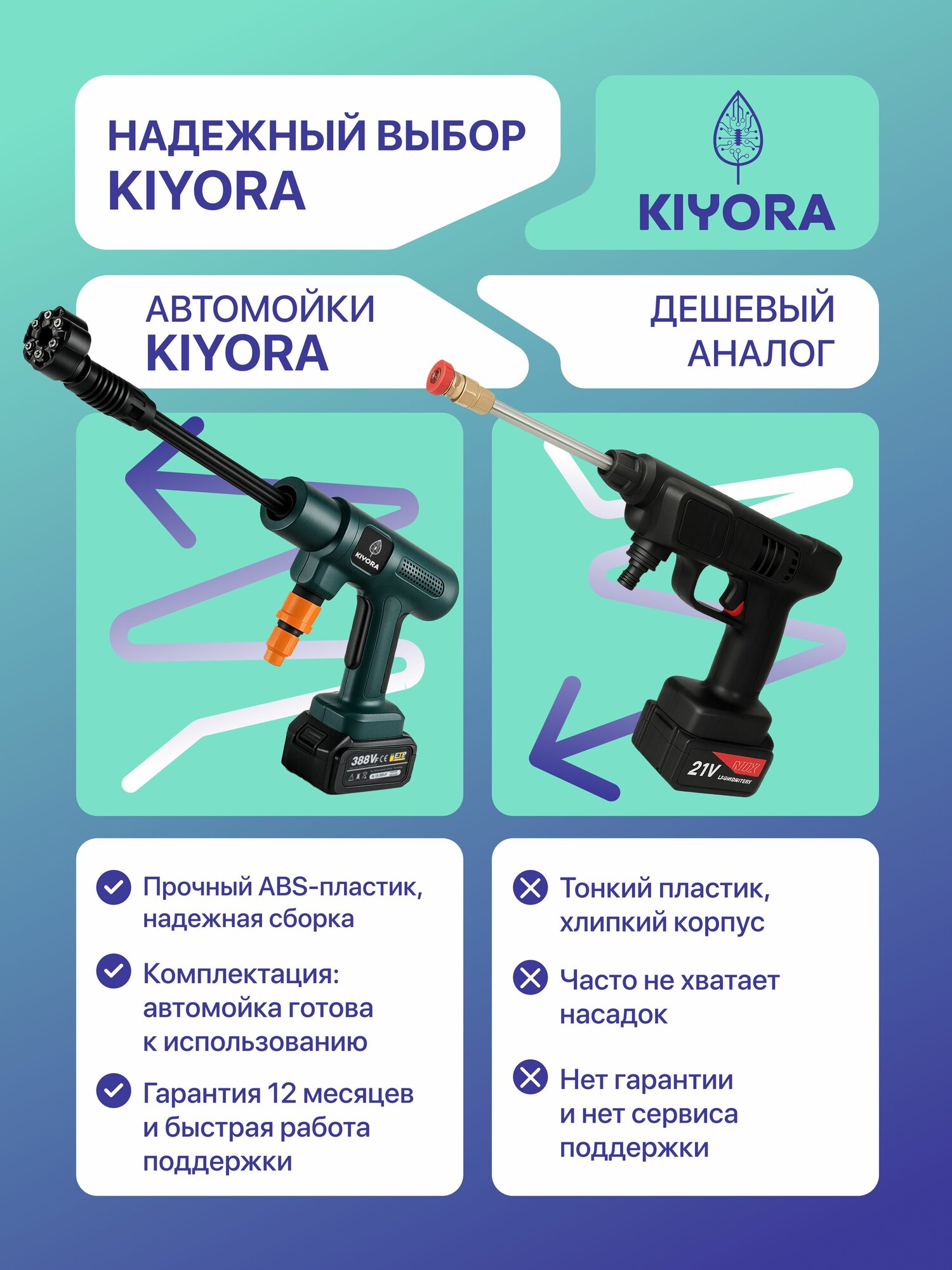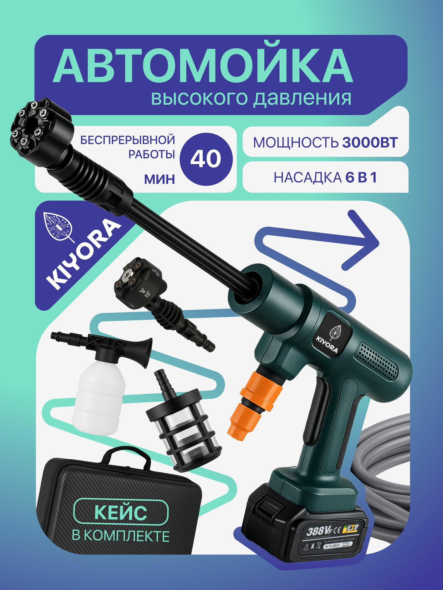 Мойка высокого давления KIYORA зелёная, 2 аккумулятора интересное: