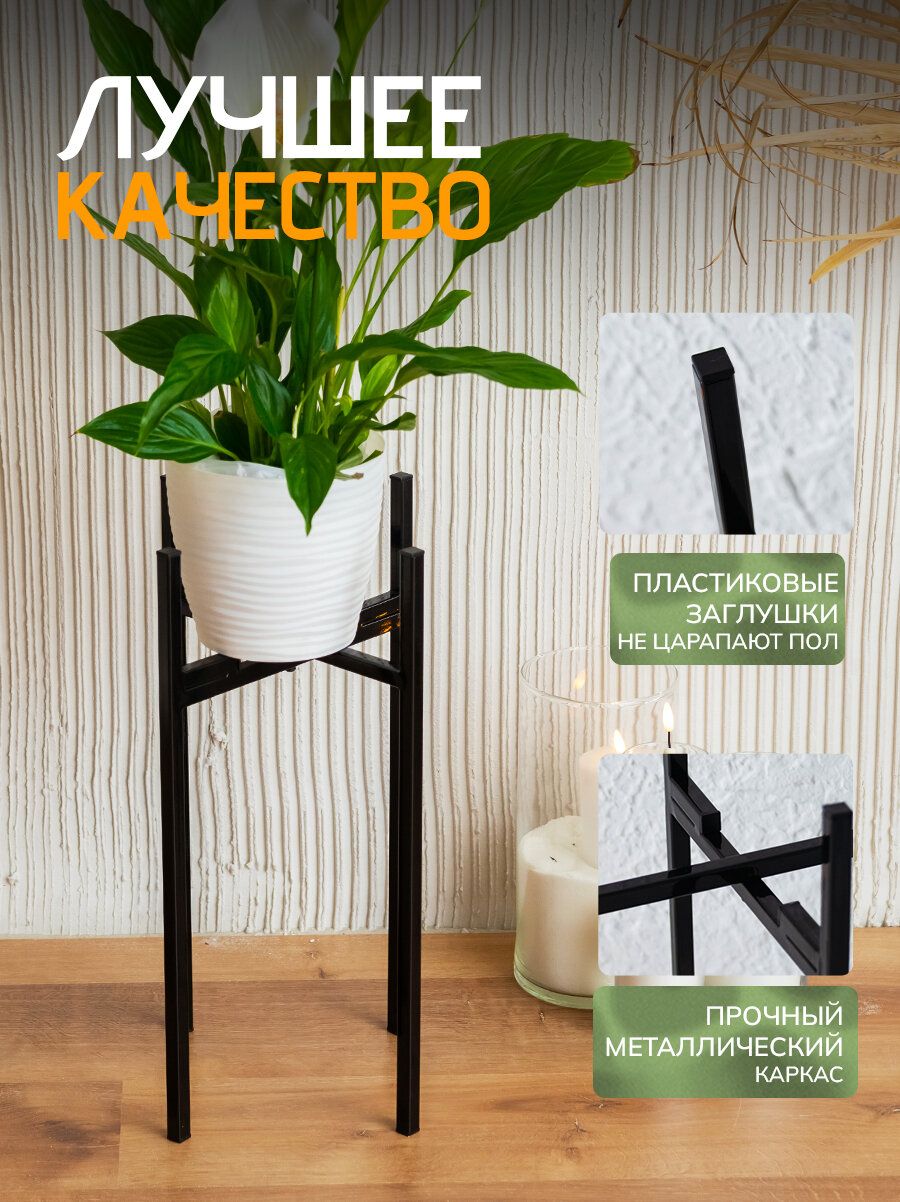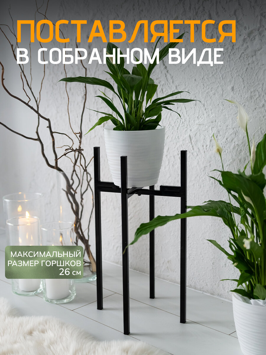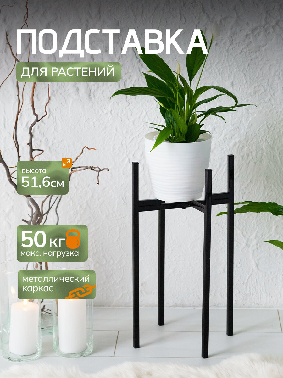 Подставка для цветов и растений лофт напольная металлическая 52 см / чёрная интересное: