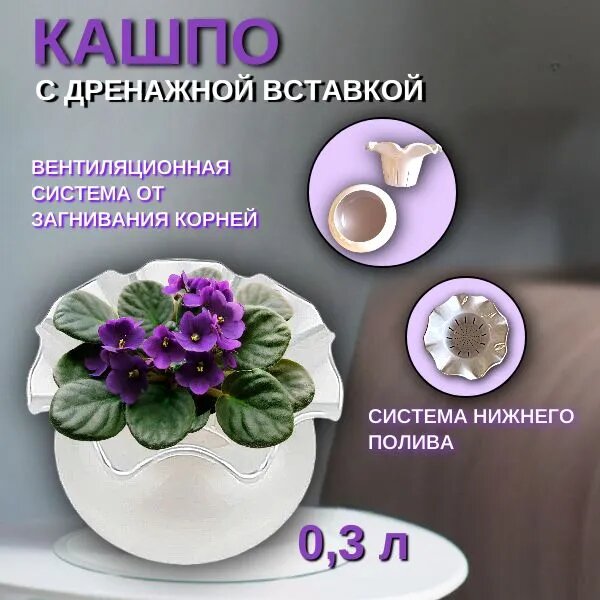Горшок Техоснастка "Аленький цветочек", для фиалок, белый, 0,3л интересное:
