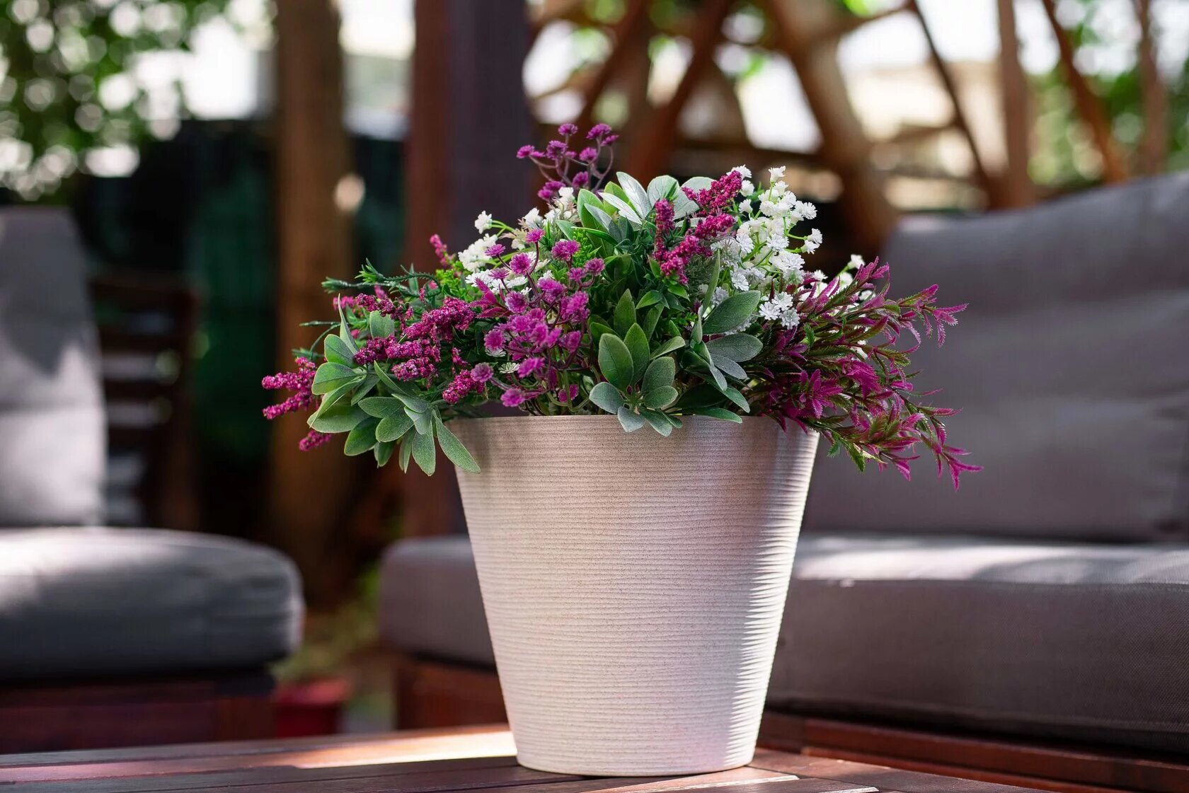 Купить Кашпо с дренажной вставкой «Конус Эко», 5,2 л, d=22,5 см. Цвет: Слоновая кость