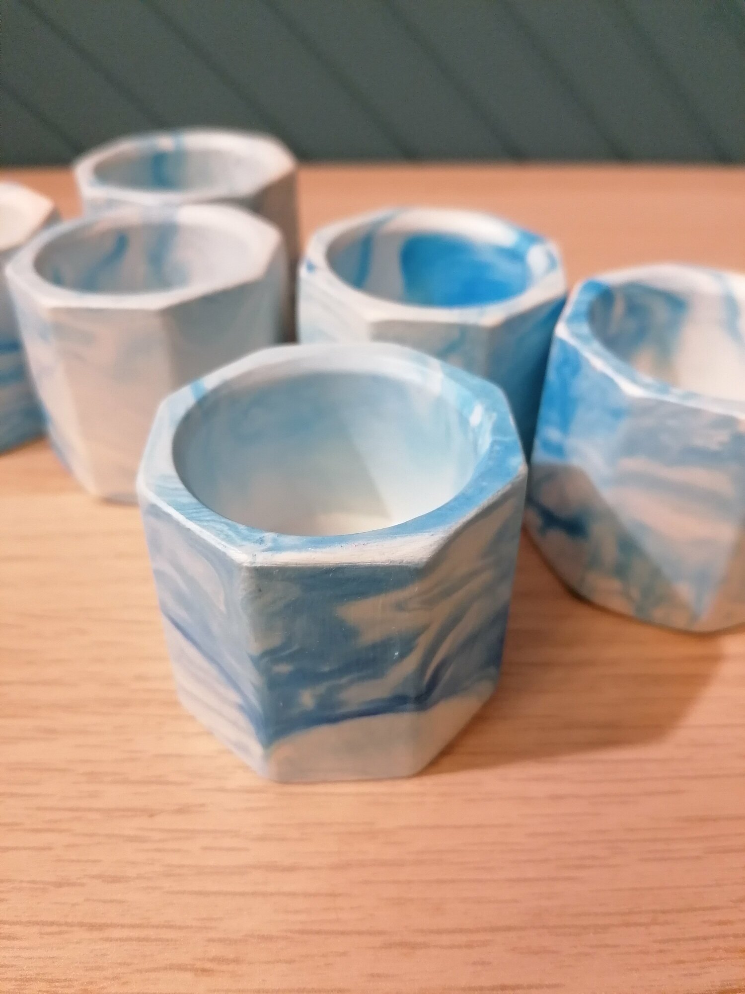 Набор шесть кашпо "Аквамарин" мрамор