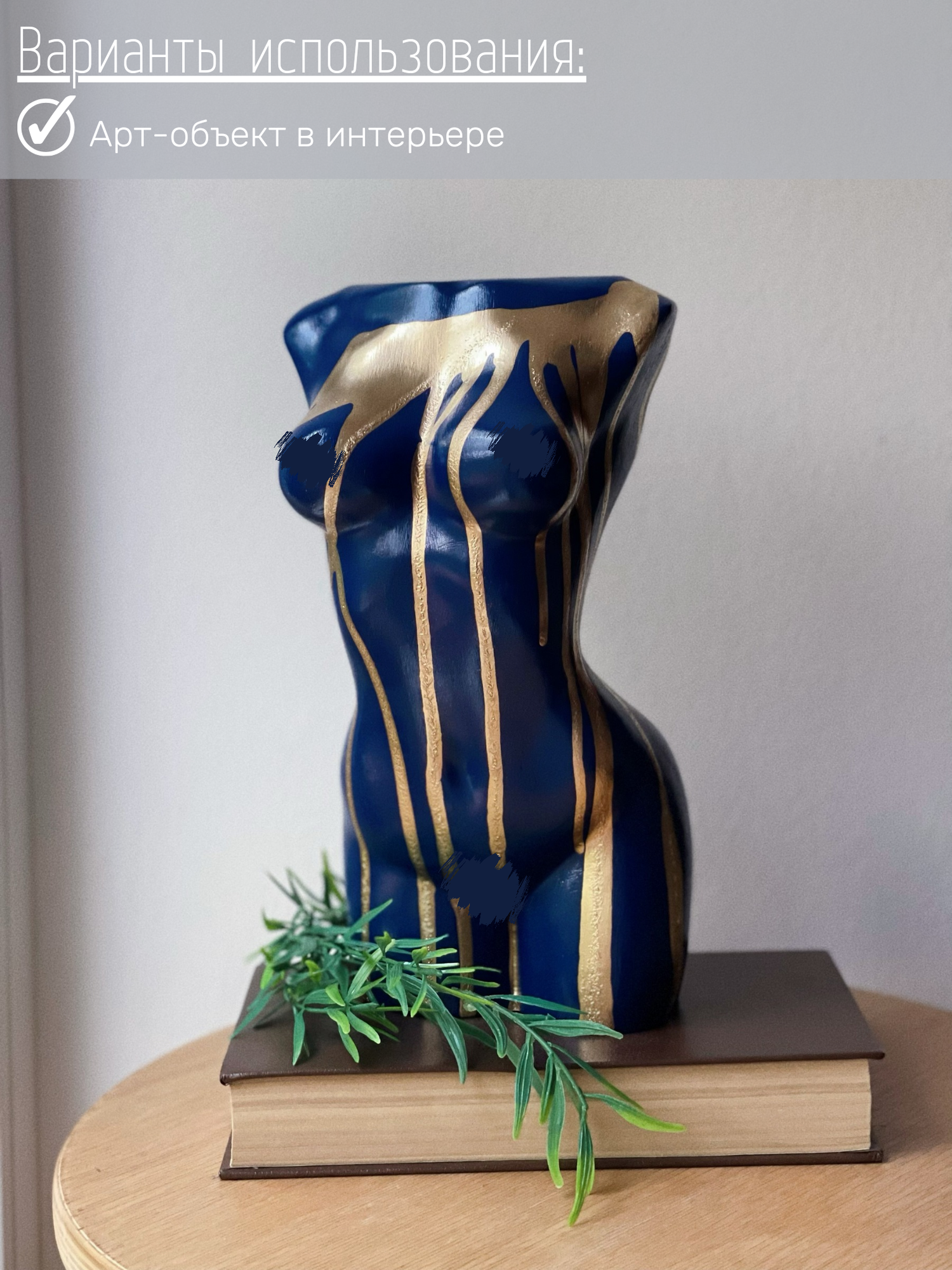 СохранитьКашпо Женское тело декоративное, 25 см, гипс, синее облитое золотом интересное: