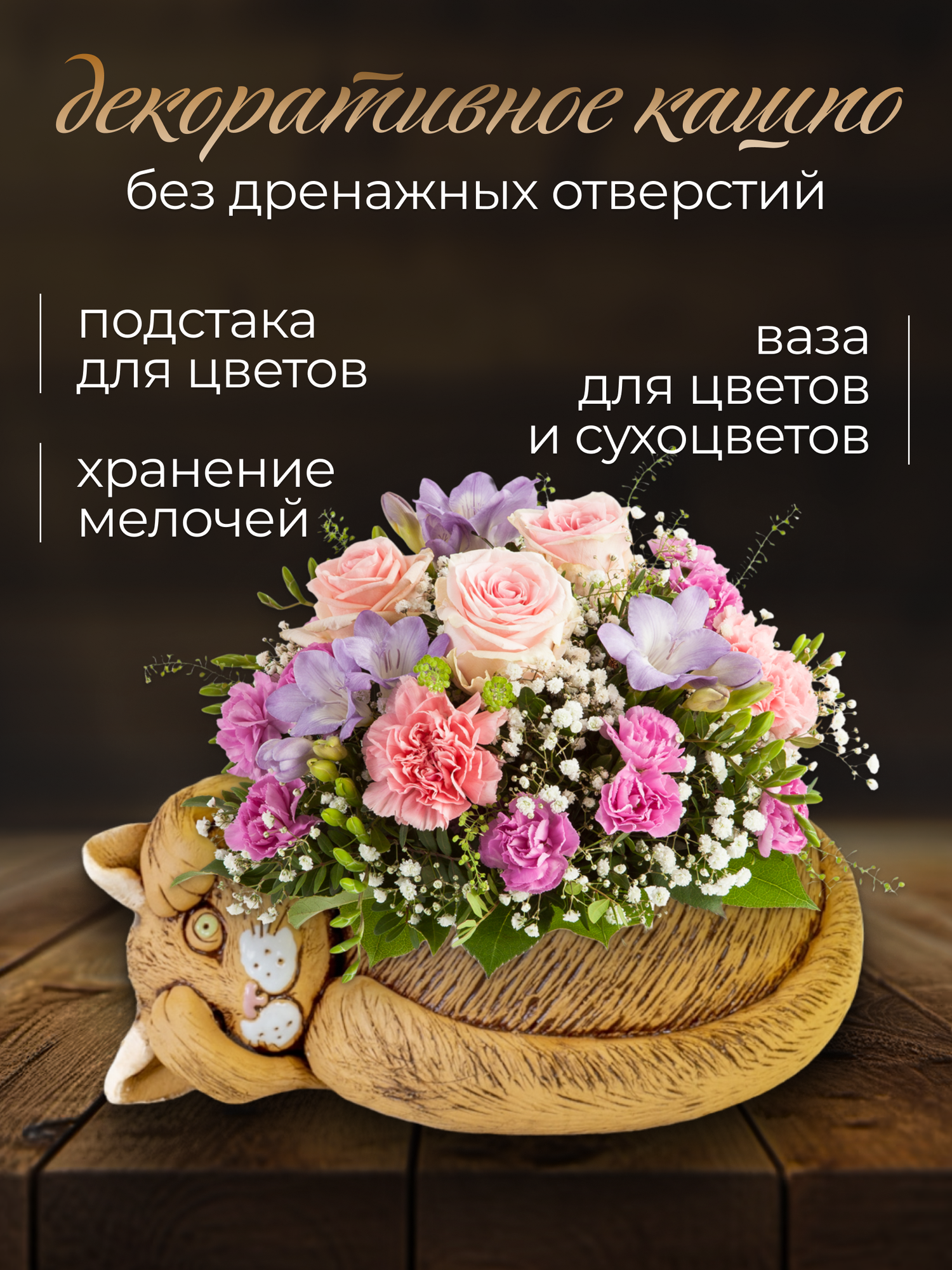 Авторское керамическое кашпо для цветов ручной работы, Кошка интересное: