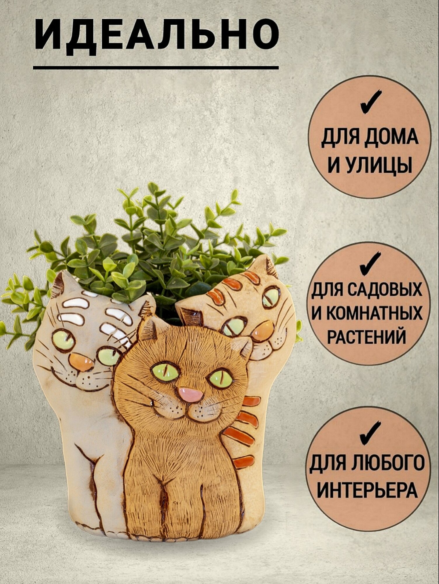 Авторское керамическое кашпо для цветов ручной работы, Котята интересное:
