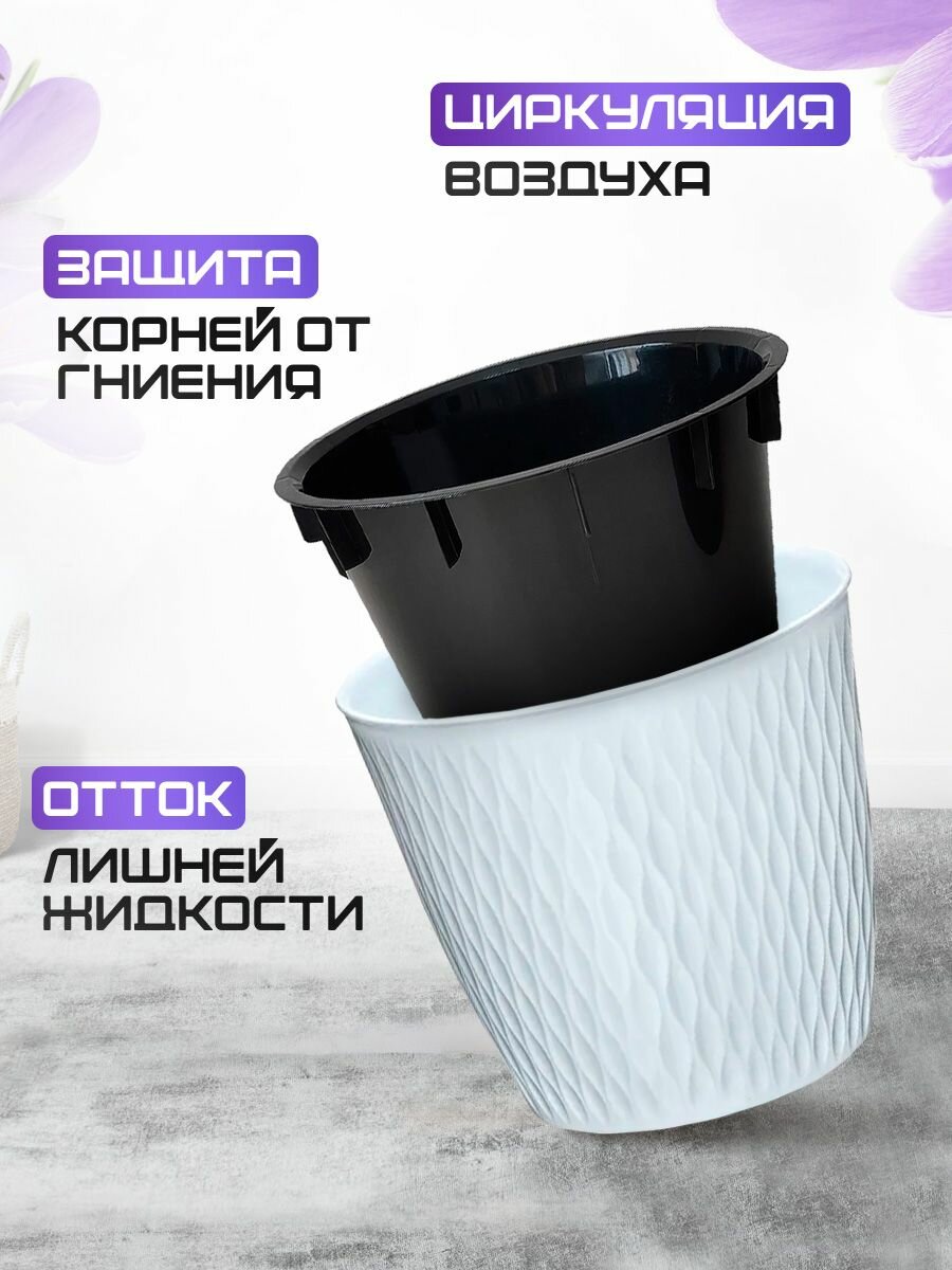 Купить Кашпо elfplast "Kerama" для растений и цветов 1,1 л 5 шт, (белый ) 582