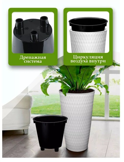 Купить Кашпо elfplast "Kerama" для растений напольное декоративное 15,5 л, (белый) 583