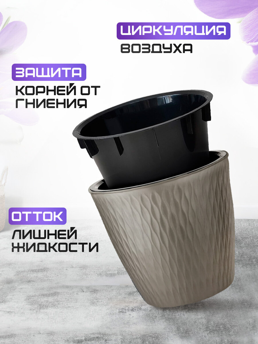Кашпо elfplast "Kerama" для растений и цветов 8,5 л 2 шт, (серо-коричневый) 497