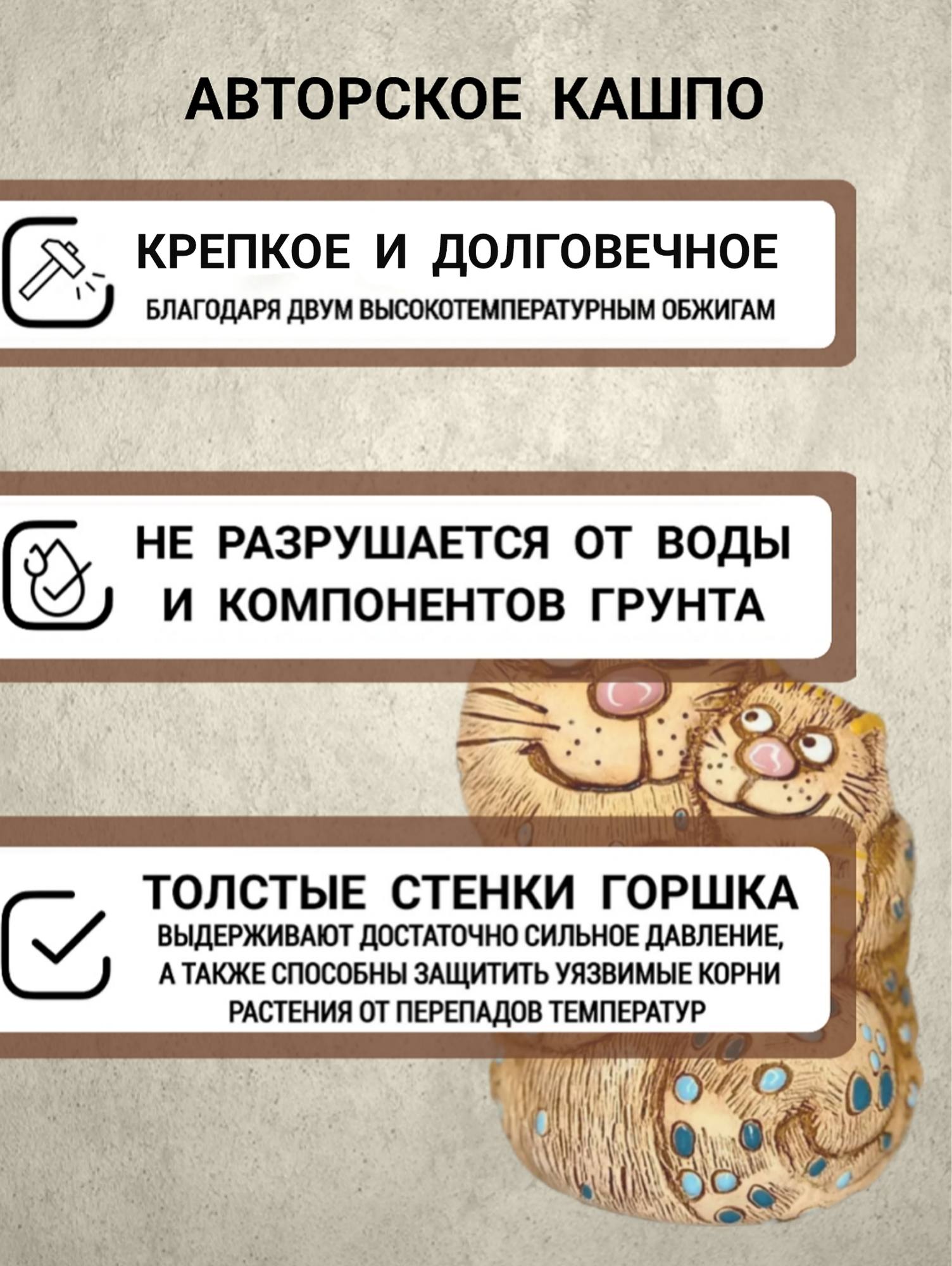 Ниже Вы можете прочитать отзывы на Авторское керамическое кашпо для цветов ручной работы, Кошка с котёнком, ознакомится с подробными характеристиками, посмотреть интересные обзоры и фотографии на Авторское керамическое кашпо для цветов ручной работы, Кошка с котёнком.