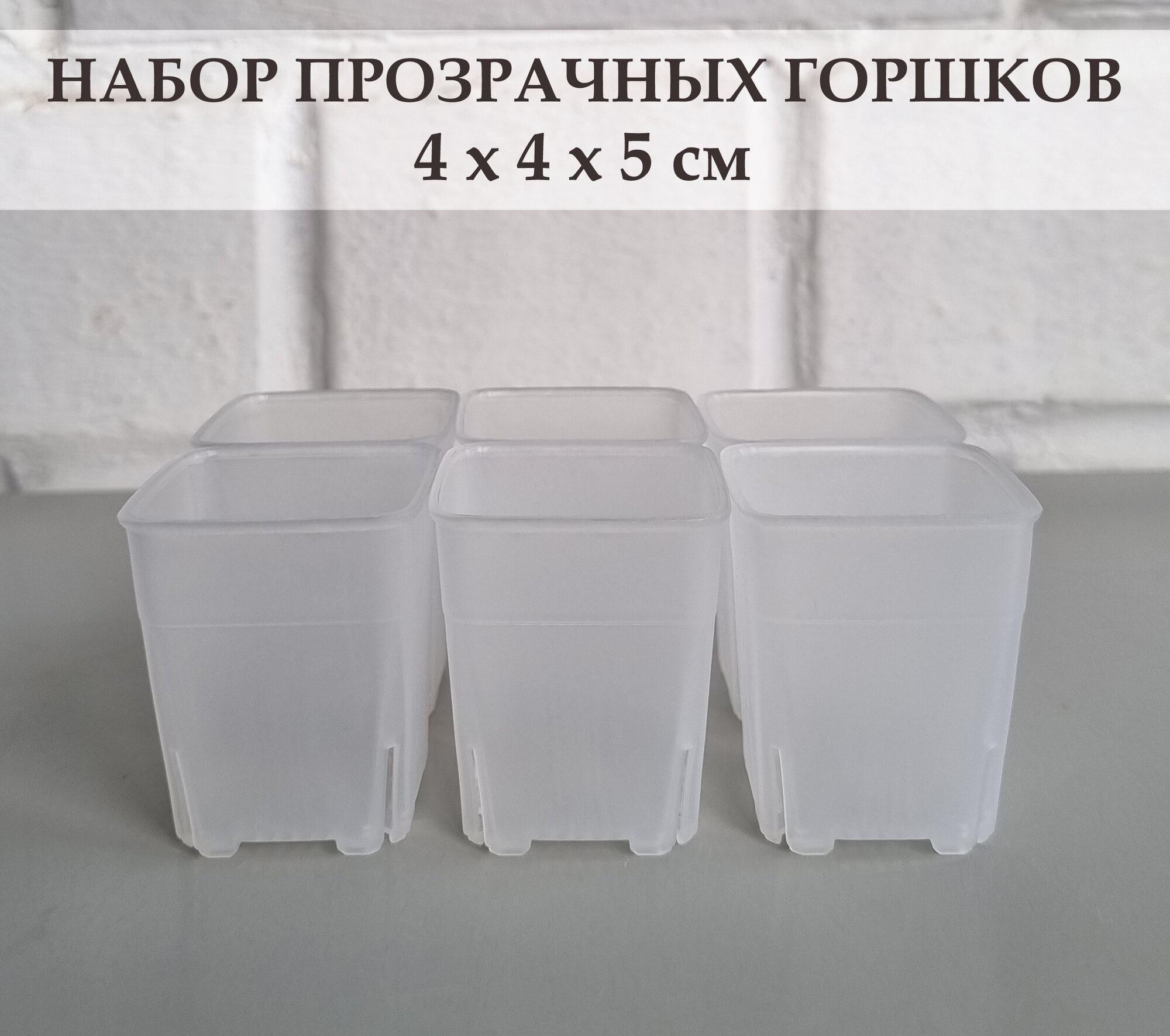 White Garden Прозрачные высокие горшки для суккулентов и кактусов 4,8х6 см. Набор из 6 штук