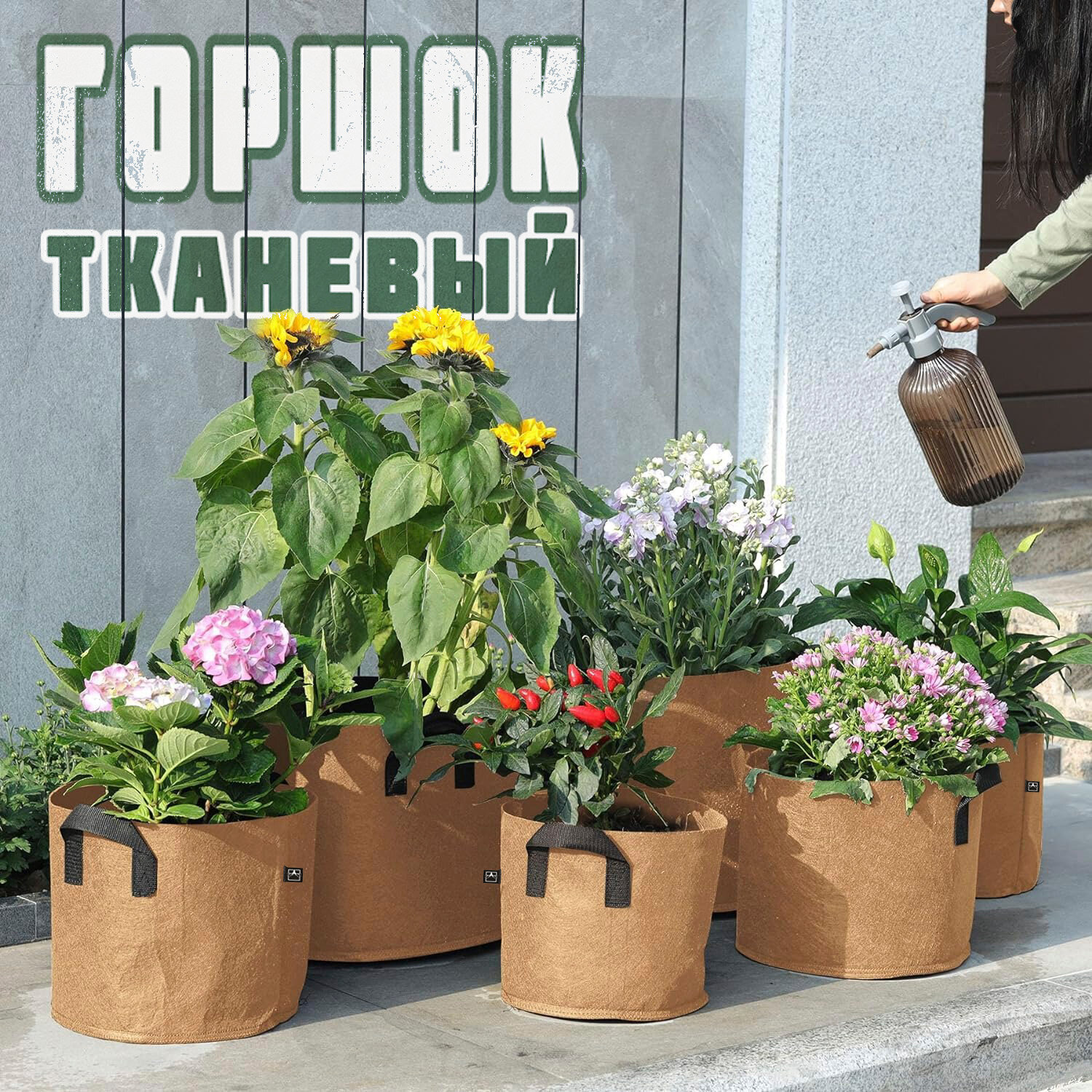 Купить Бежевый Плотный Тканевый Мешок Горшок с ручками, 25л, 3 штуки (гроубег, гроубэг), для растений и цветов