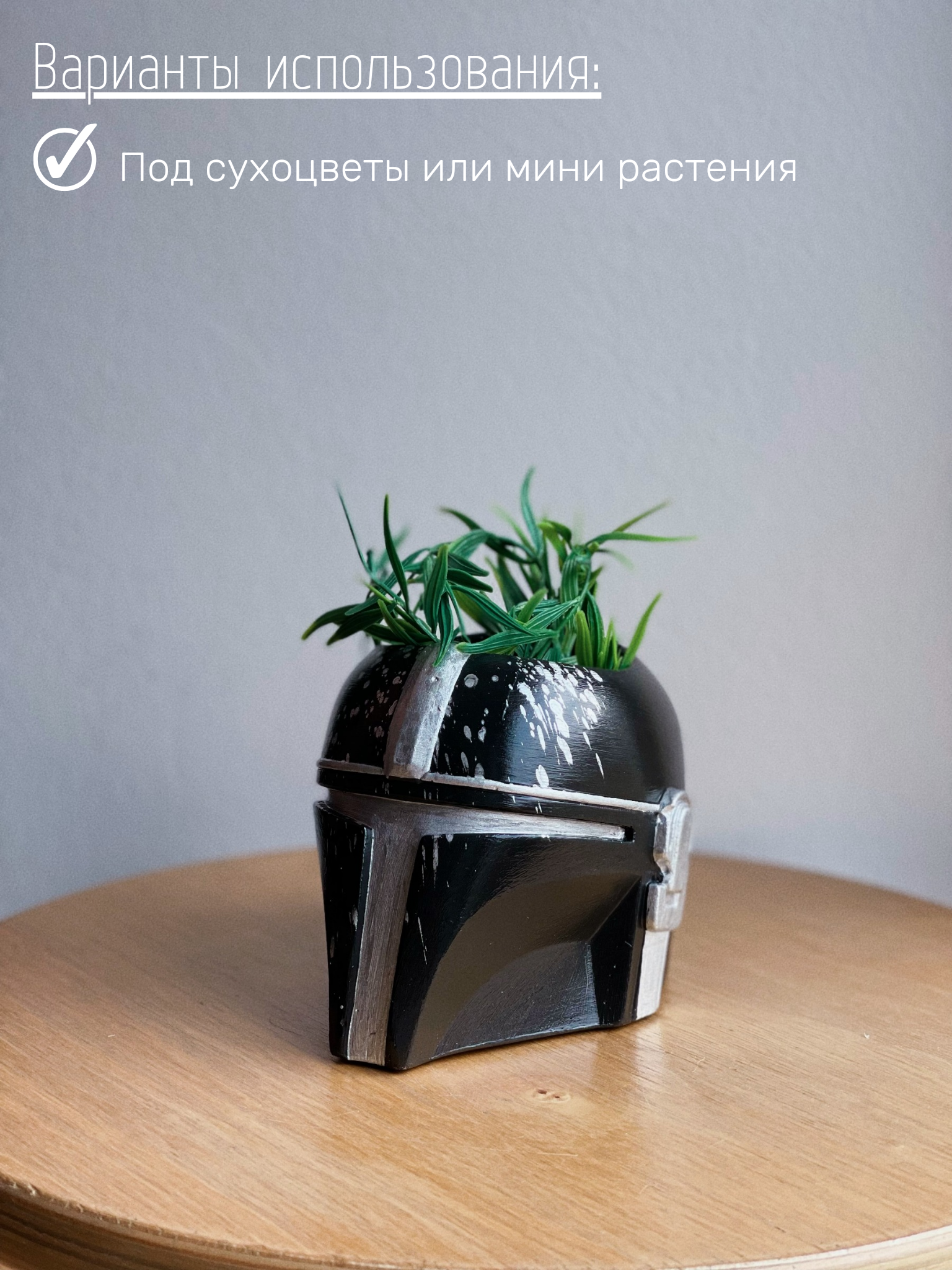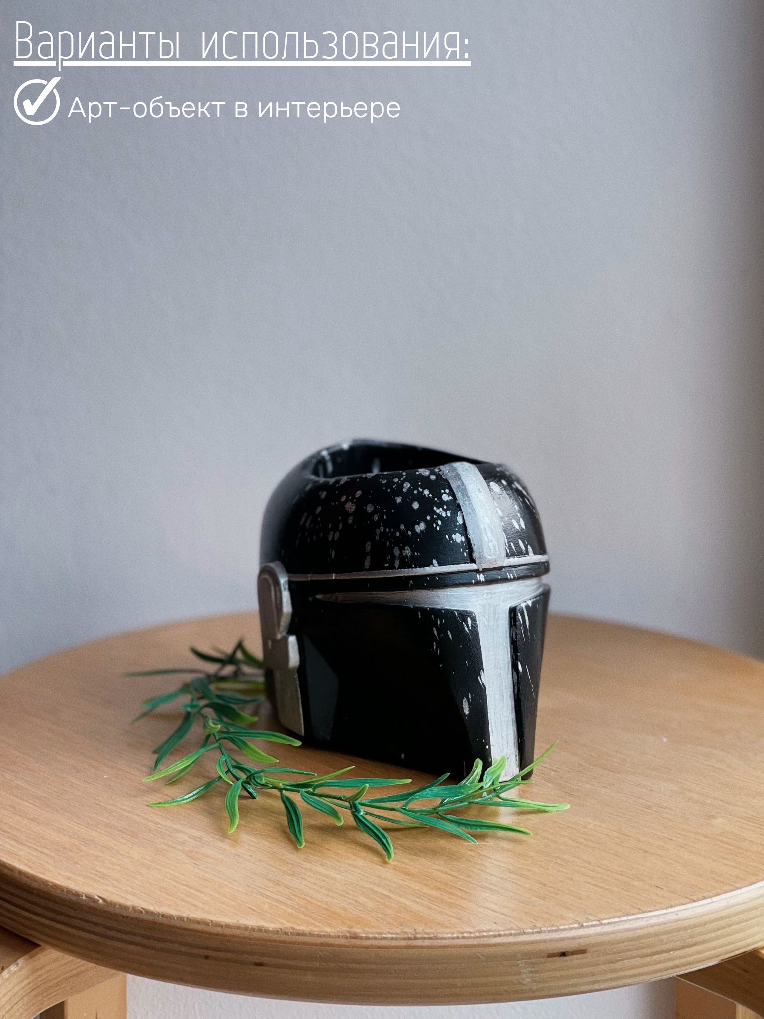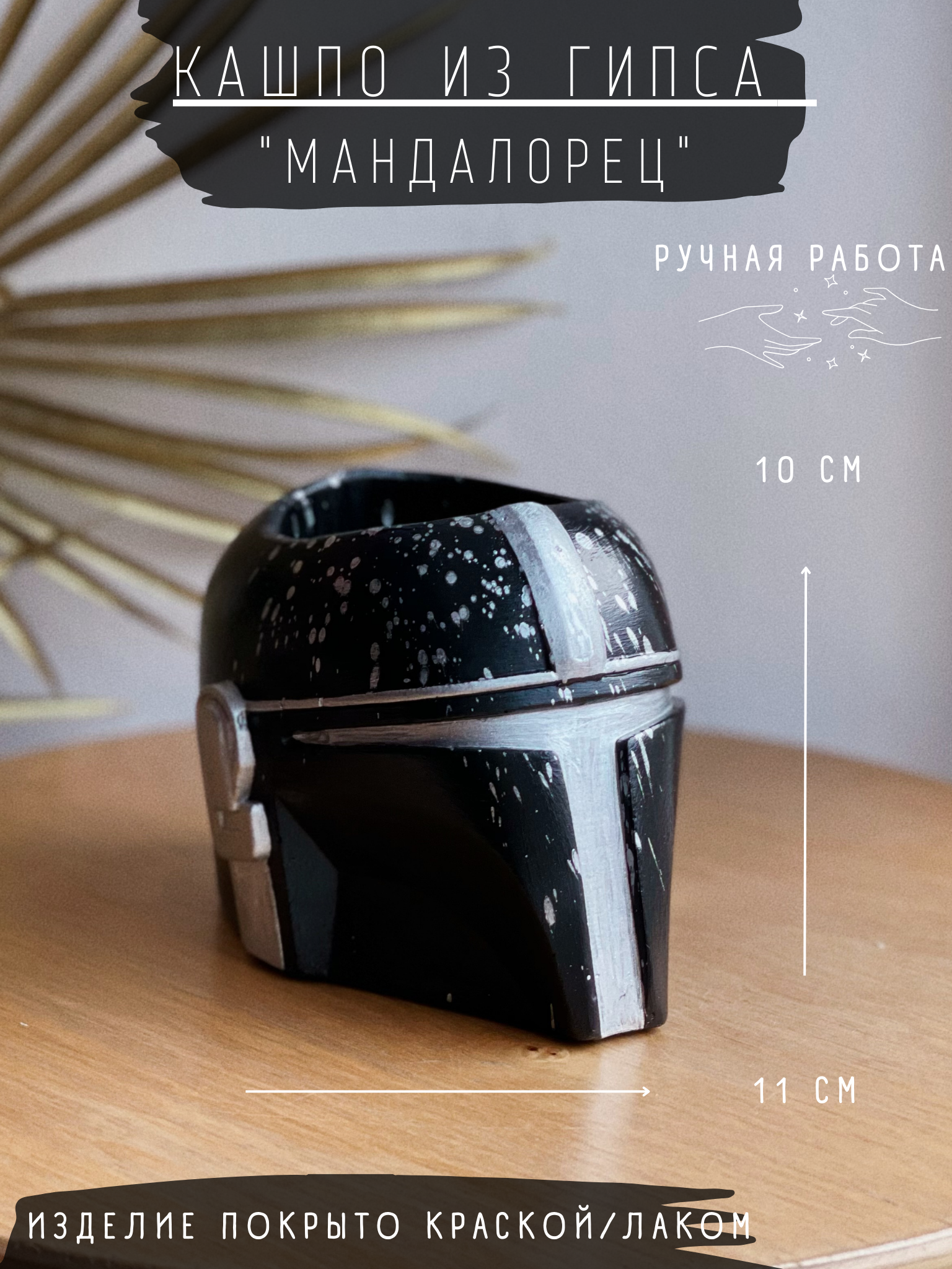 Кашпо из гипса Мандалорец, 10 см, органайзер статуэтка, черный с серебром интересное: