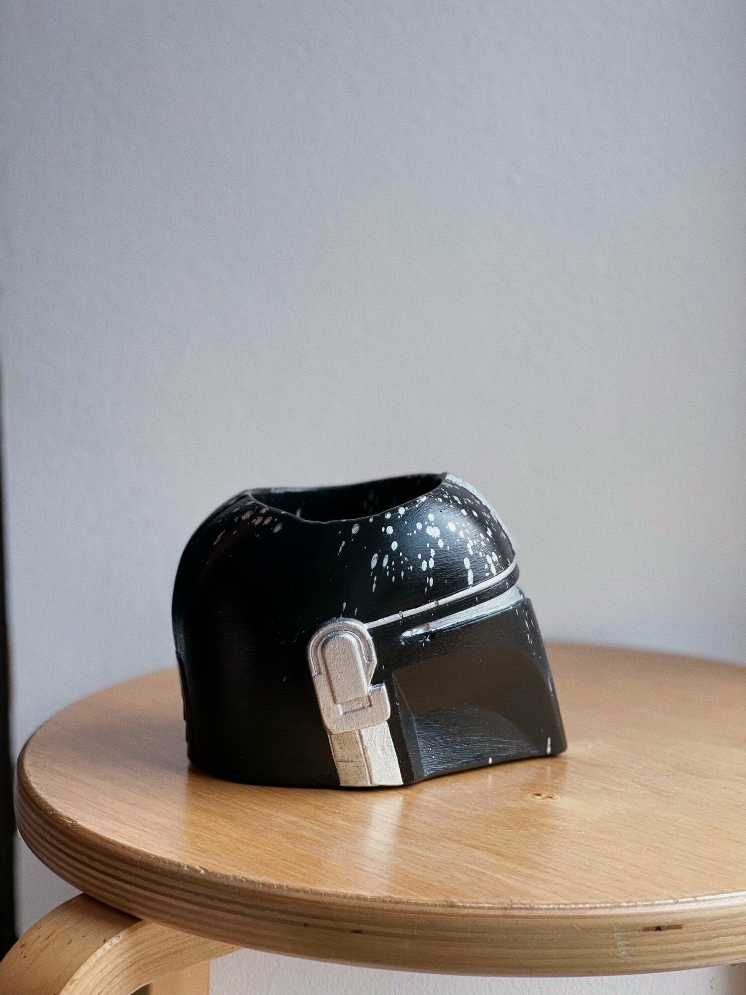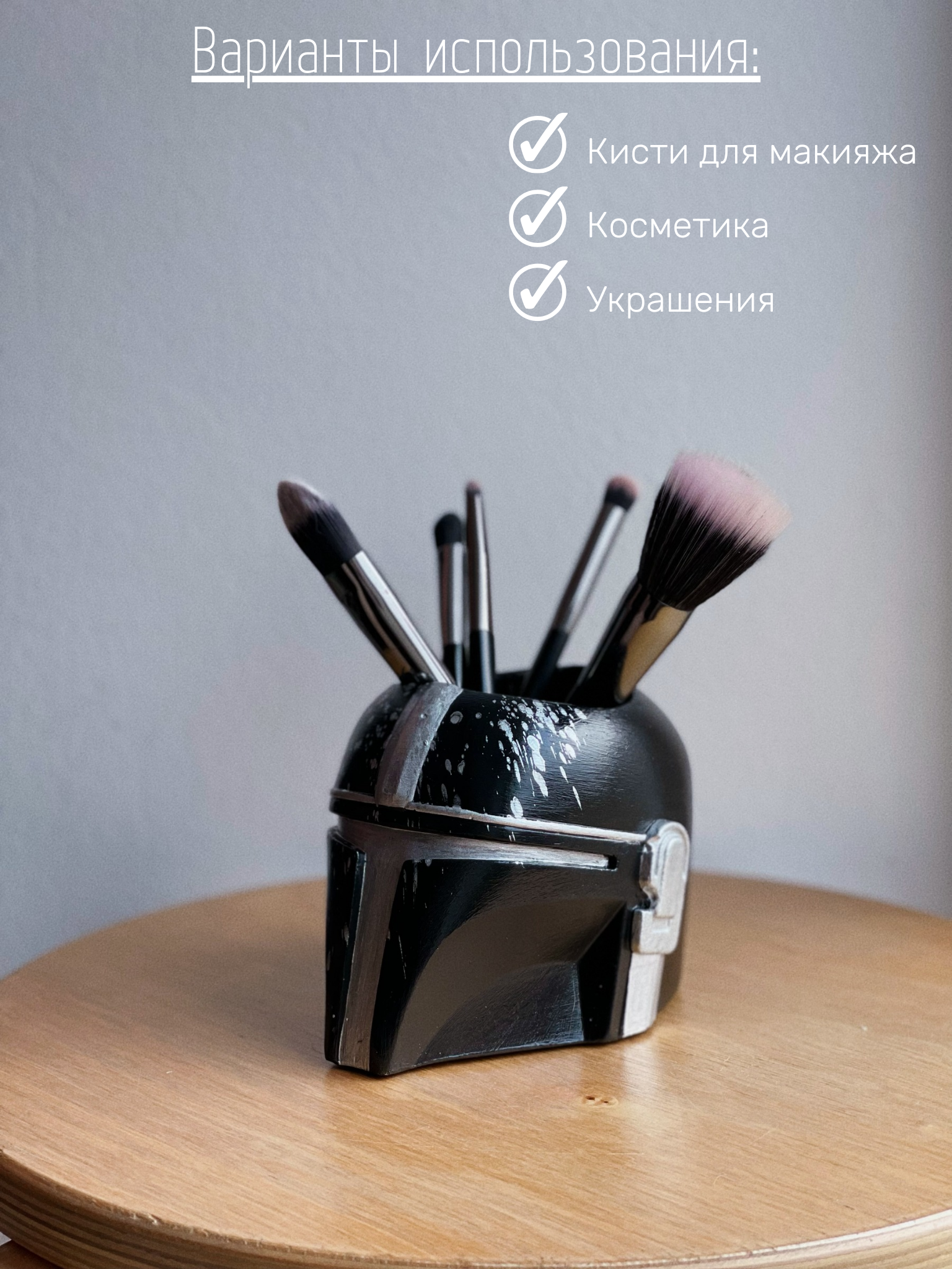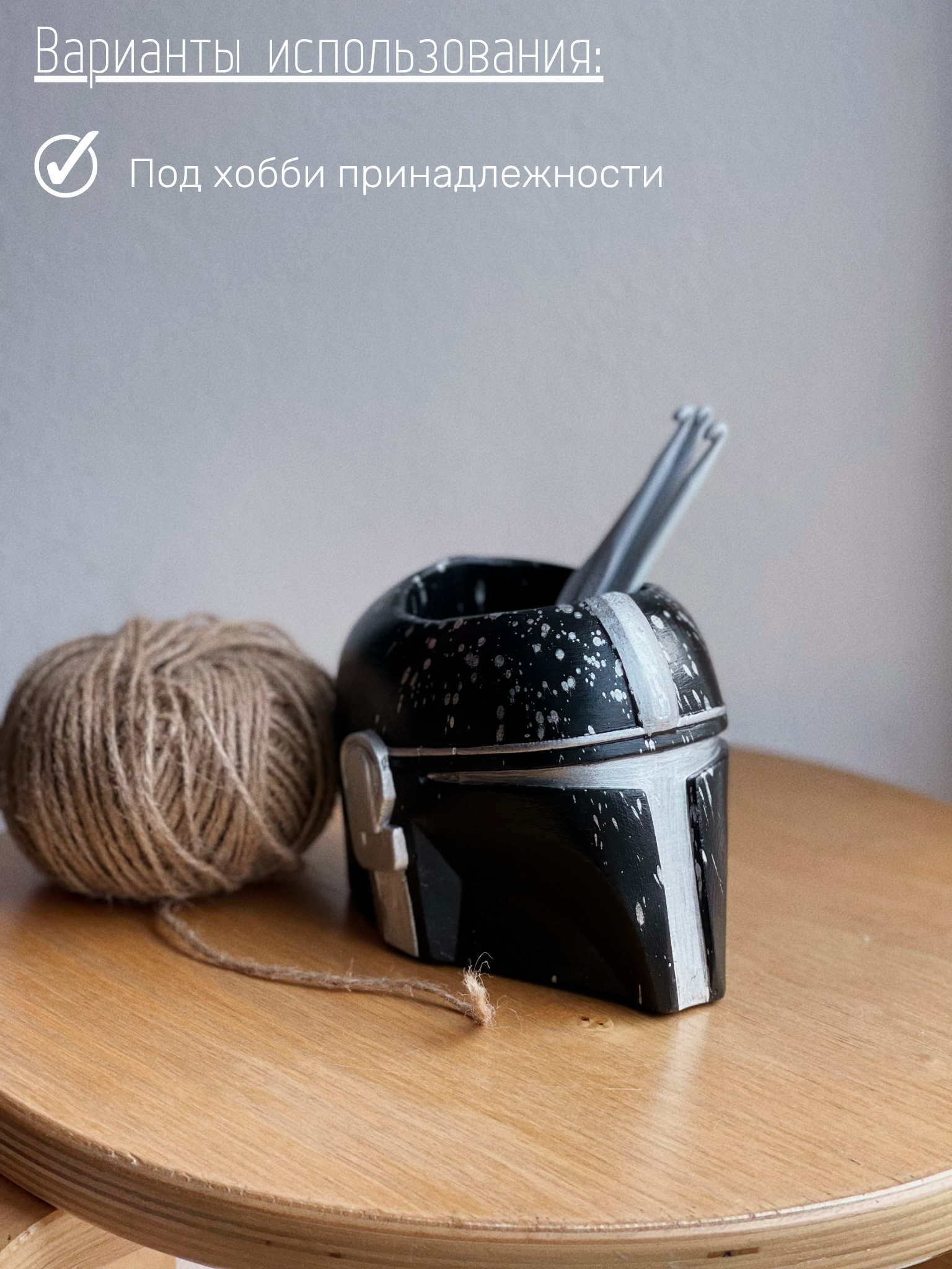 Кашпо из гипса Мандалорец, 10 см, органайзер статуэтка, черный с серебром интересное: