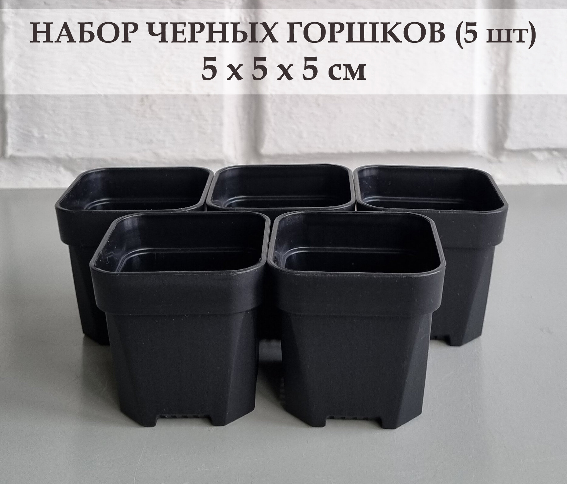 Купить Черные горшки для суккулентов, кактусов и других растений. Набор из 5 штук. Размеры 5*5 см