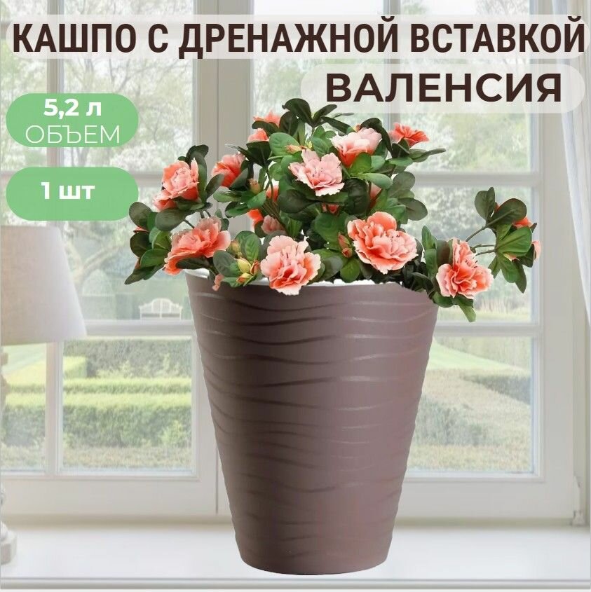 Кашпо для растений с дренажной вставкой Валенсия 5,2 л d 21,5см, мокко, коричневый горшок для цветов с автополивом, 1 шт интересное: