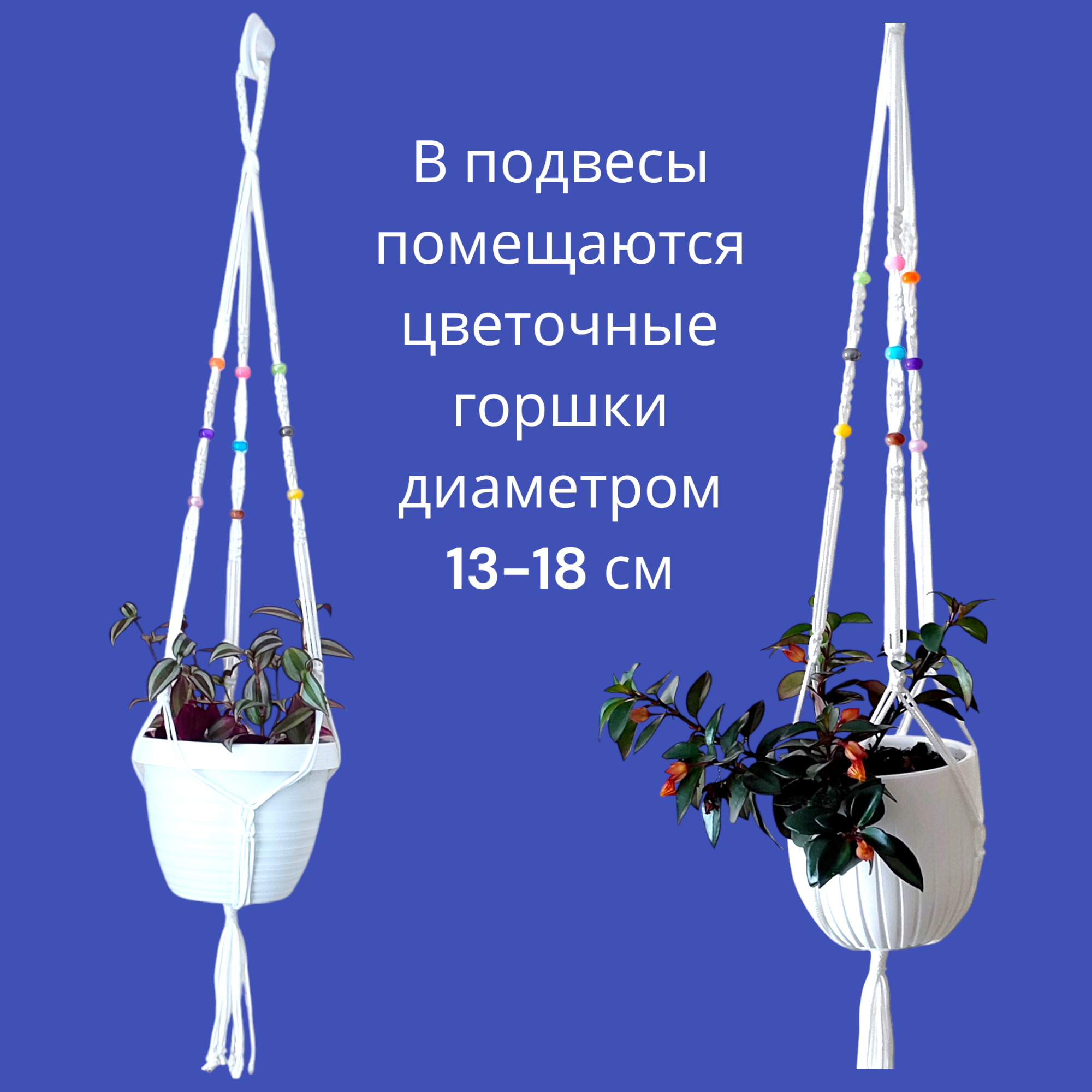 Подвесы для цветов, макраме, 2 штуки, цвет белый