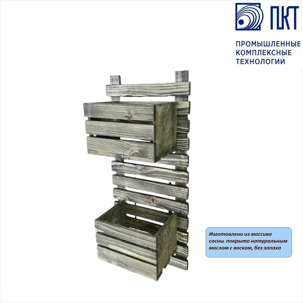 Кашпо настенное подвесное для цветов, массив сосны, цвет орех, 60см*27см*17см интересное: