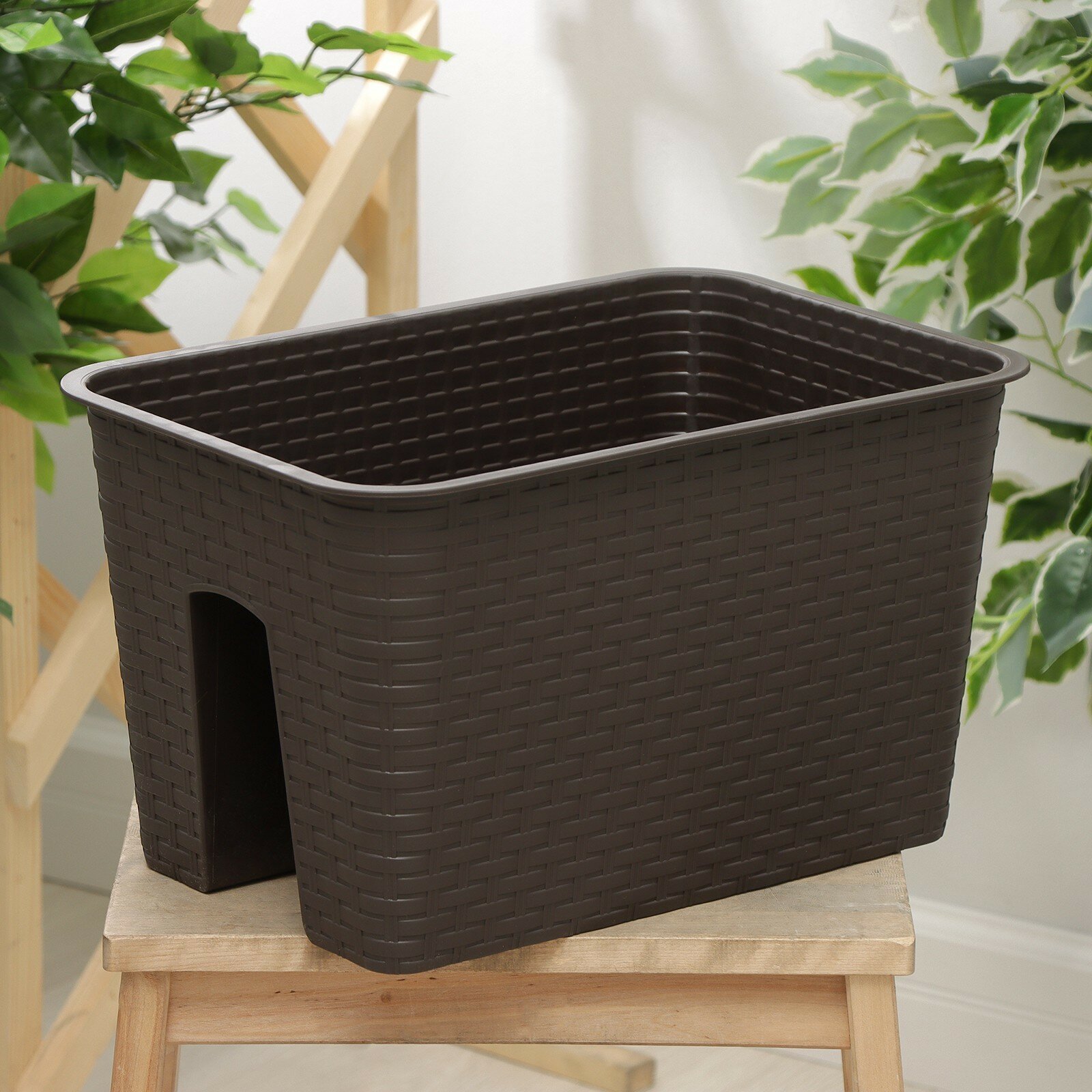 Кашпо на перила Ротанг 12л коричневый 40*27*23см интересное: