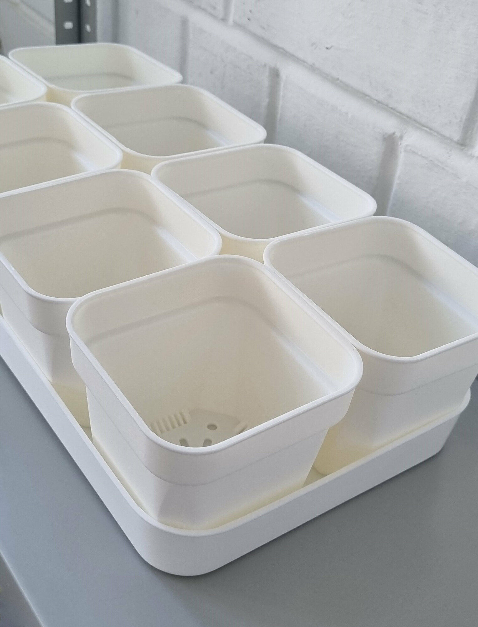 Купить Белые горшки для суккулентов. Набор горшков с поддоном, 10,5 см х 10,5 см х 9,6 см, 8 шт
