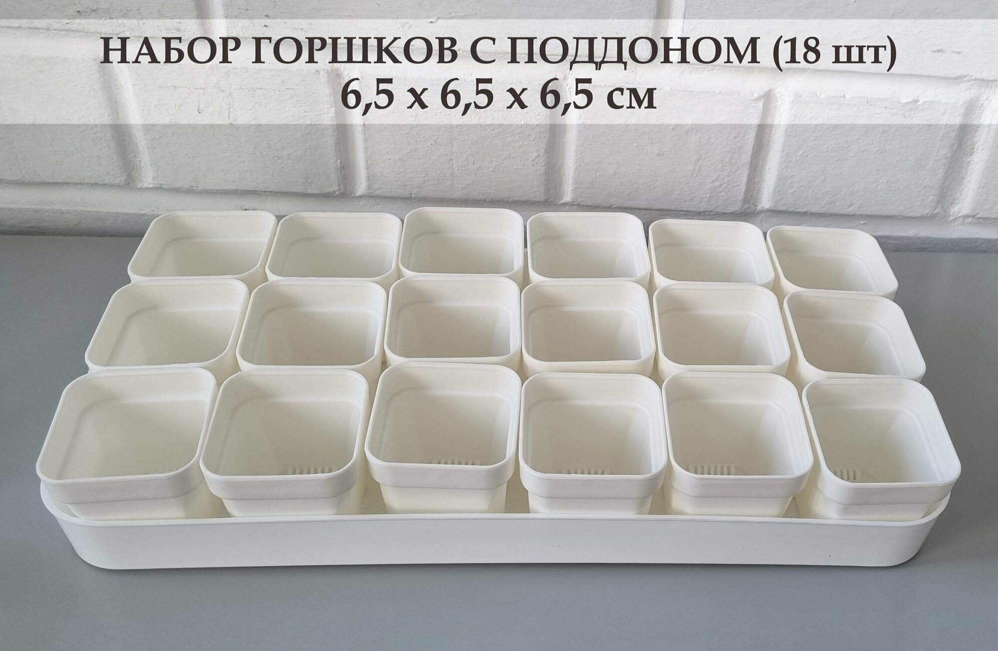 Купить Белые горшки для суккулентов. Набор горшков с поддоном, 6,5 см х 6,5 см х 6,5 см, 18 шт