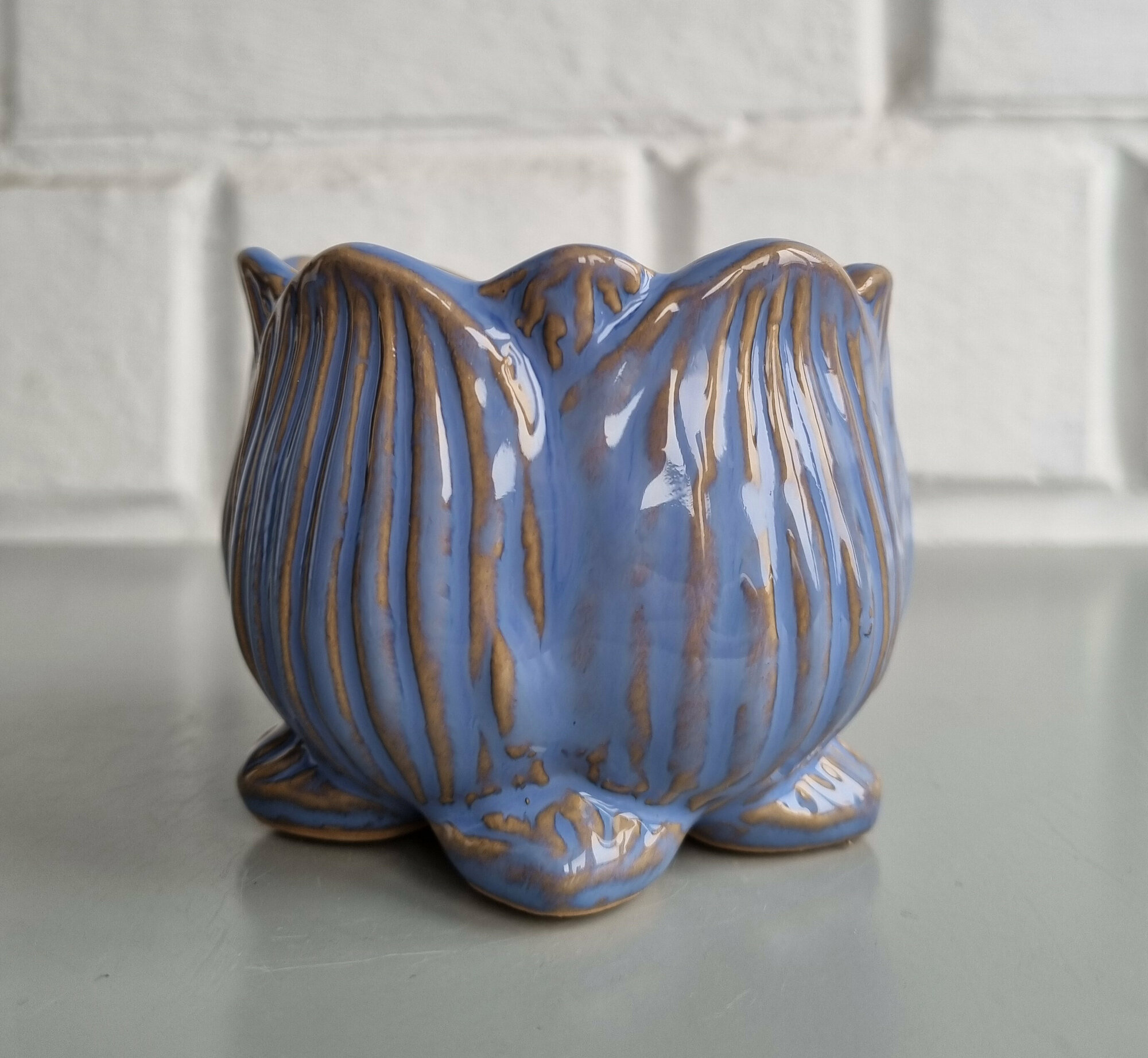 Керамический горшок для суккулентов и кактусов / Керамический горшок для цветов. Синий.