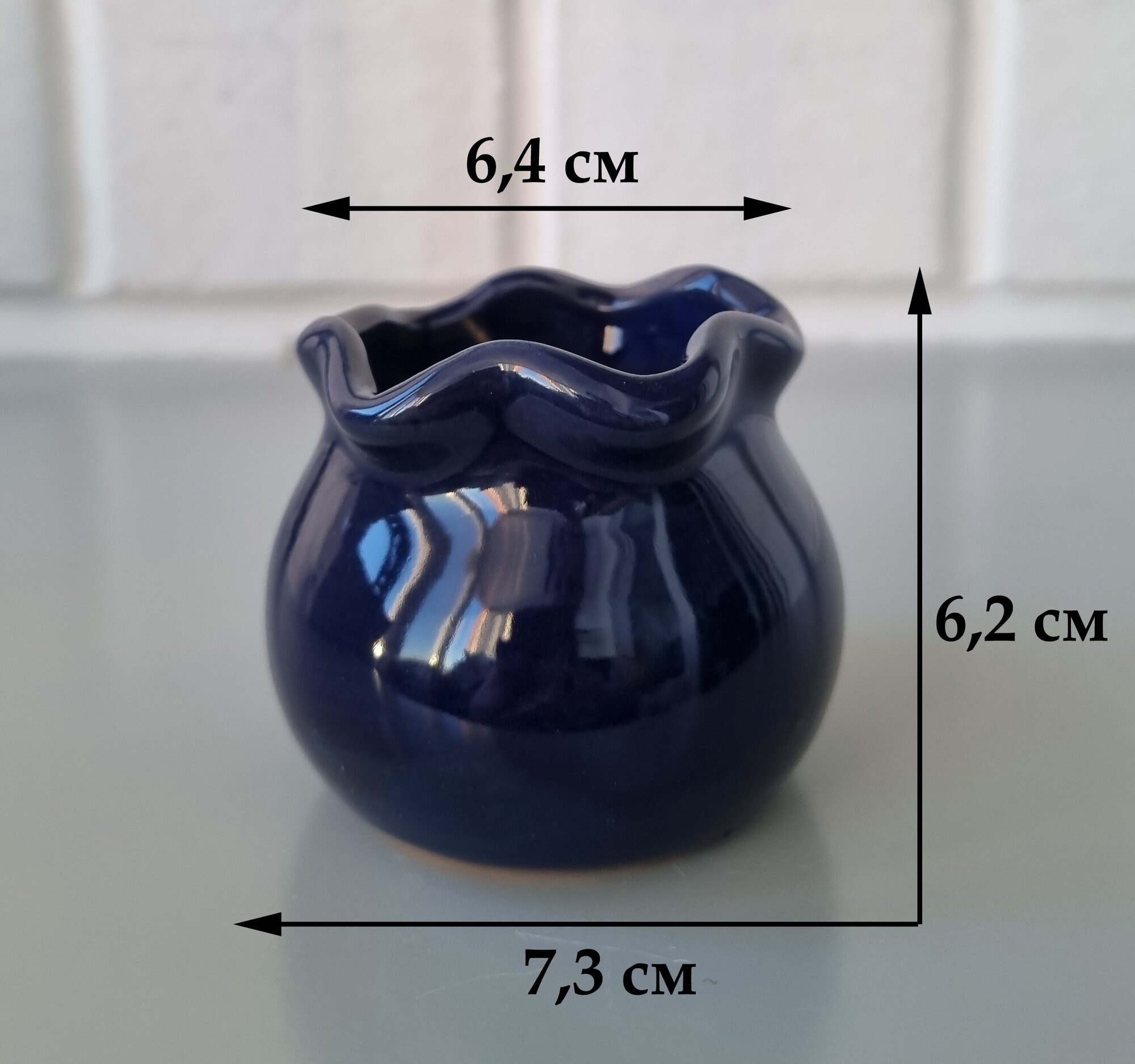 Керамический горшок для суккулентов и кактусов / Керамический горшок для цветов. Синий, 8,4х6