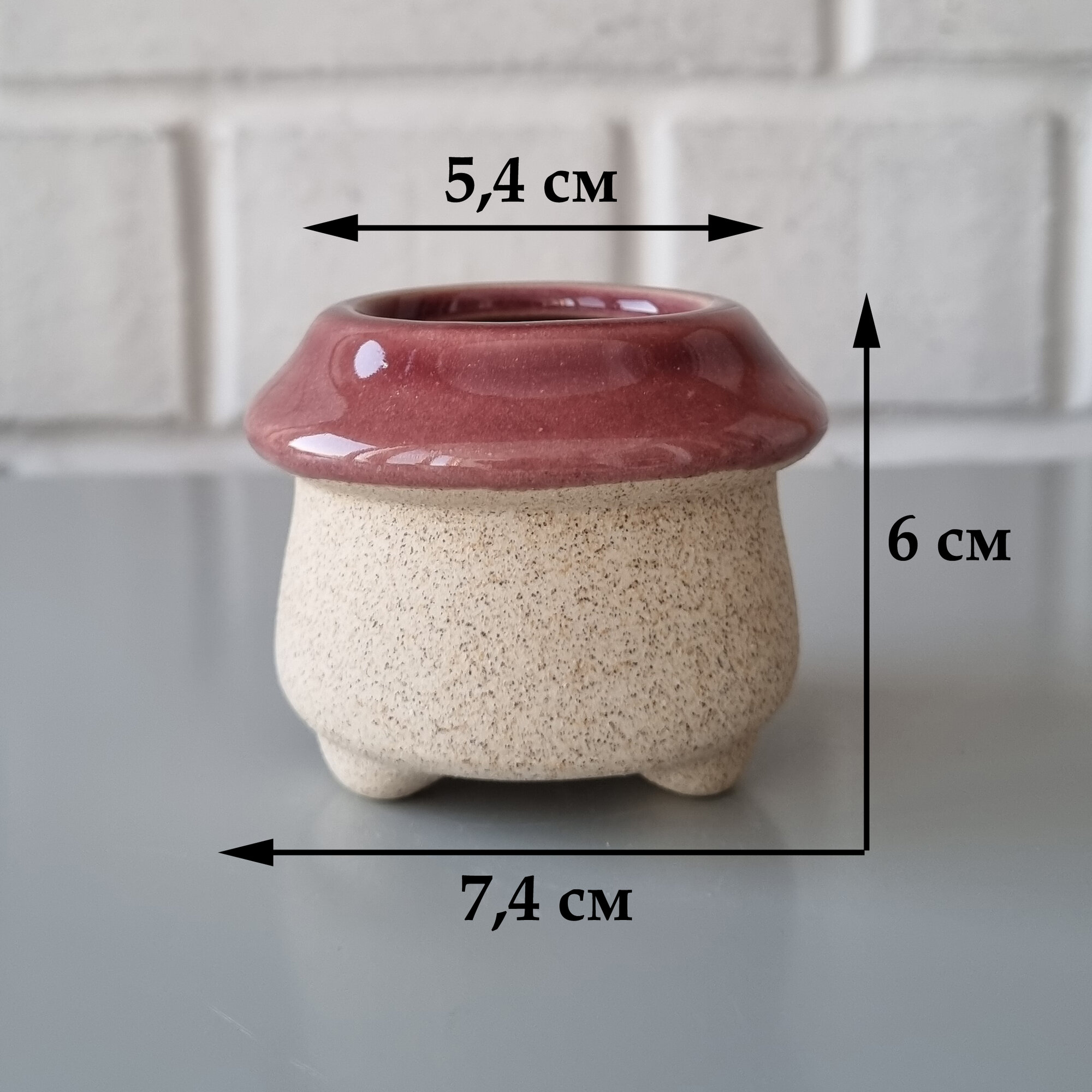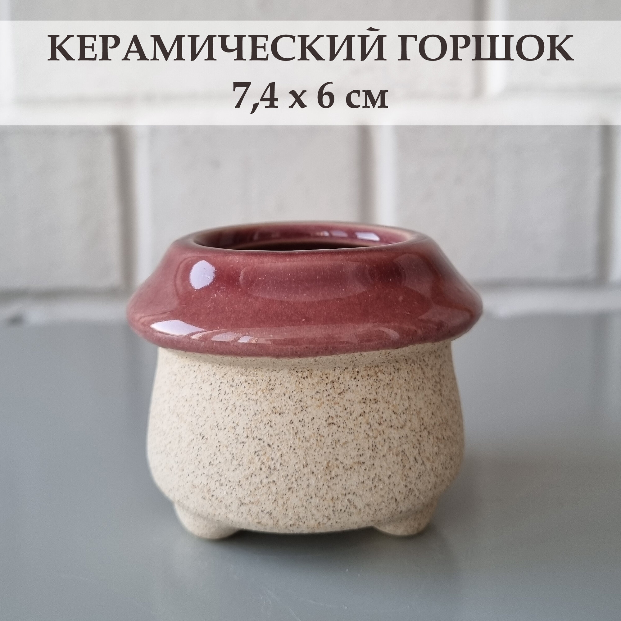 Купить Керамический горшок для суккулентов и кактусов / Керамический горшок для цветов. Бежевый/красный