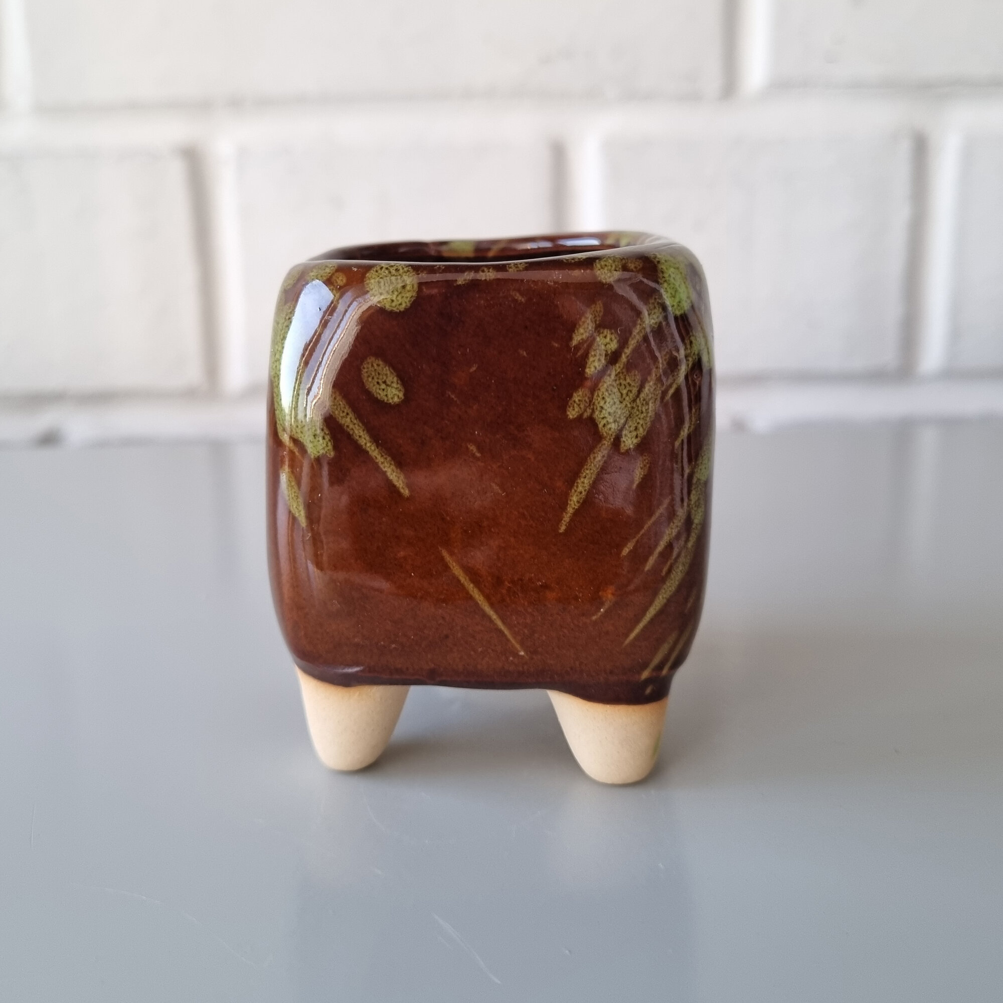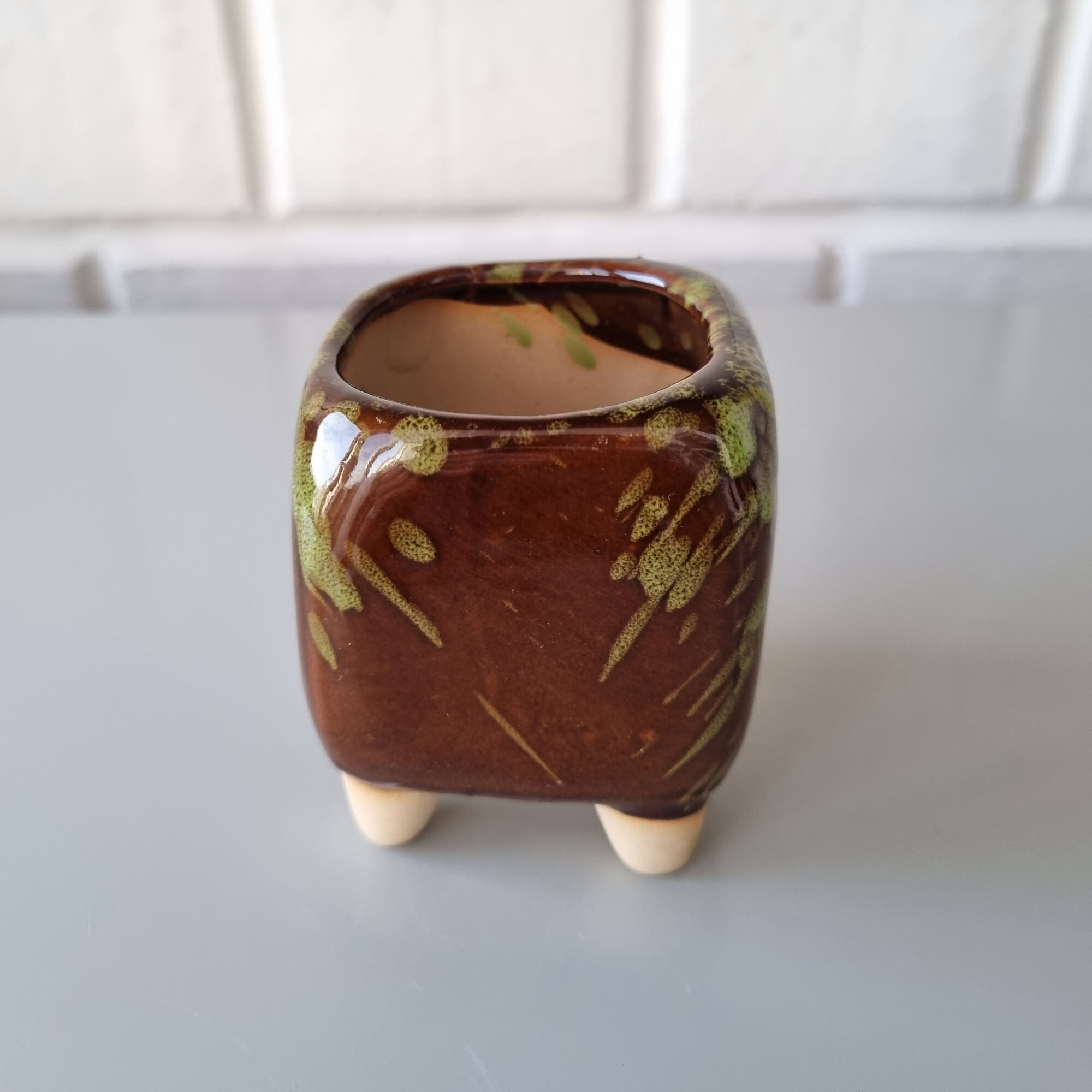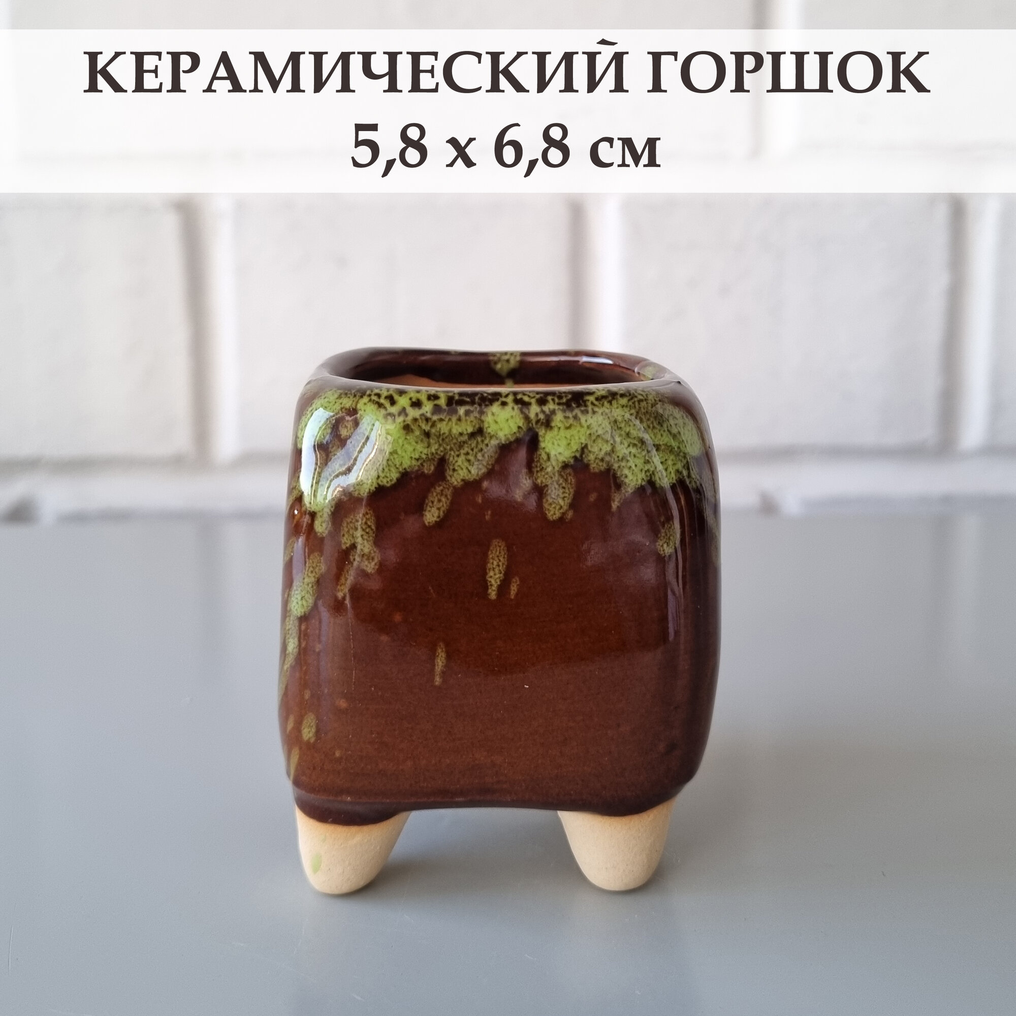 Купить Керамический горшок для суккулентов и кактусов / Керамический горшок для цветов, коричневый с зеленым