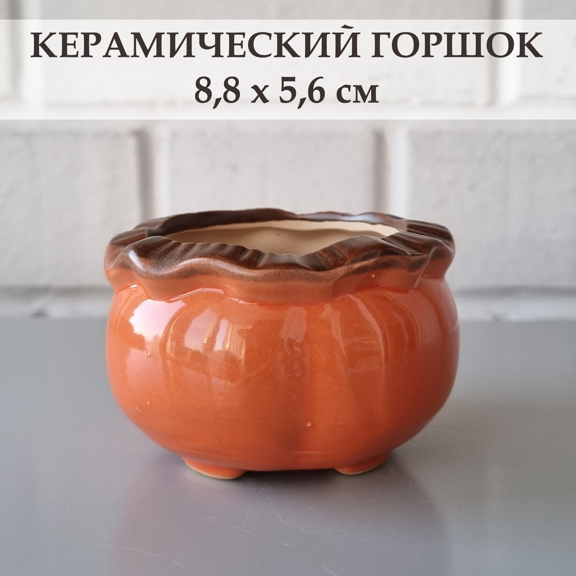 Купить Керамический горшок для суккулентов и кактусов / Керамический горшок для цветов. Оранжевый/коричневый