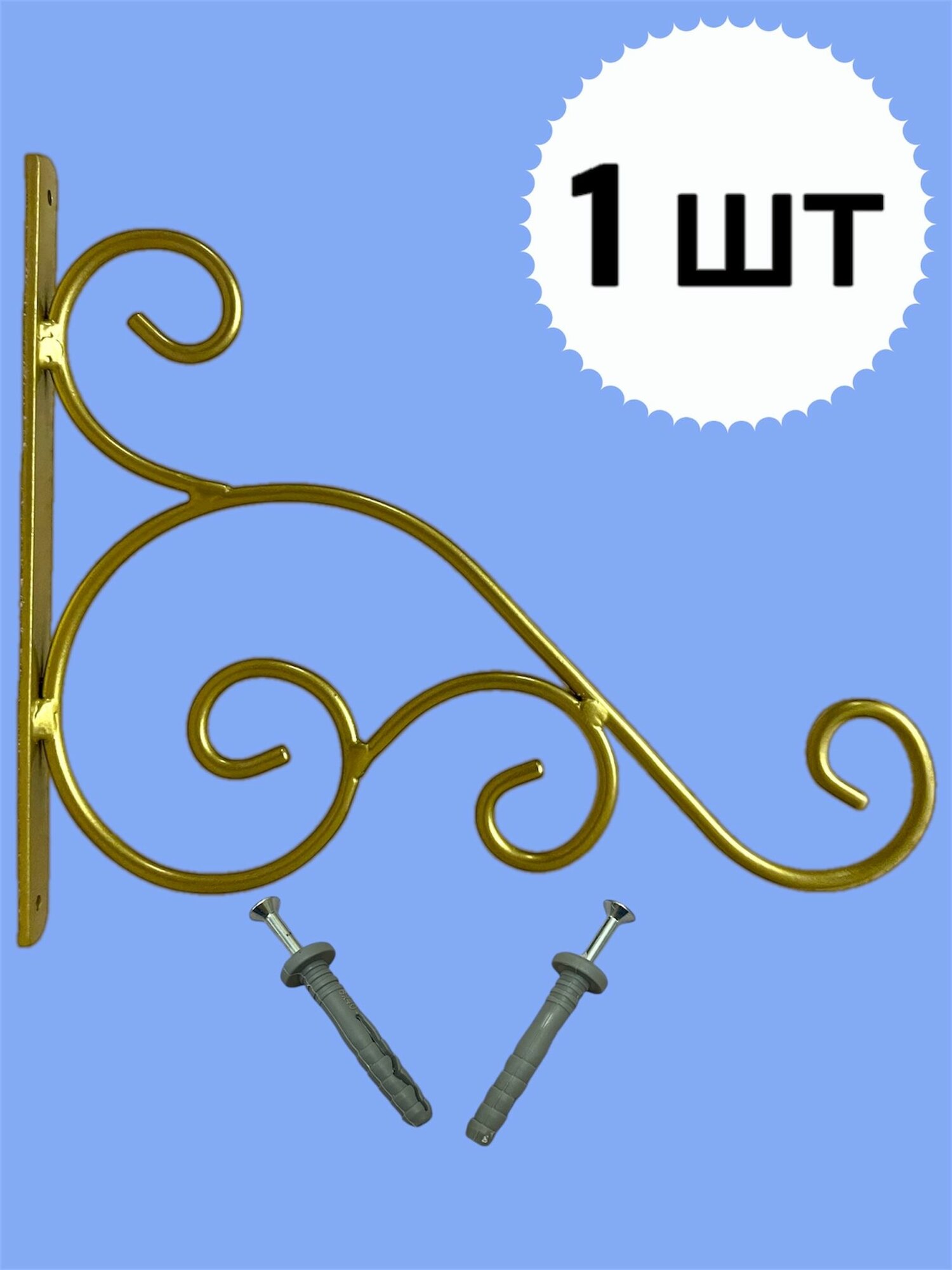 СохранитьКронштейн кованый держатель для подвесных кашпо с цветами настенный. Золото, 1шт интересное: